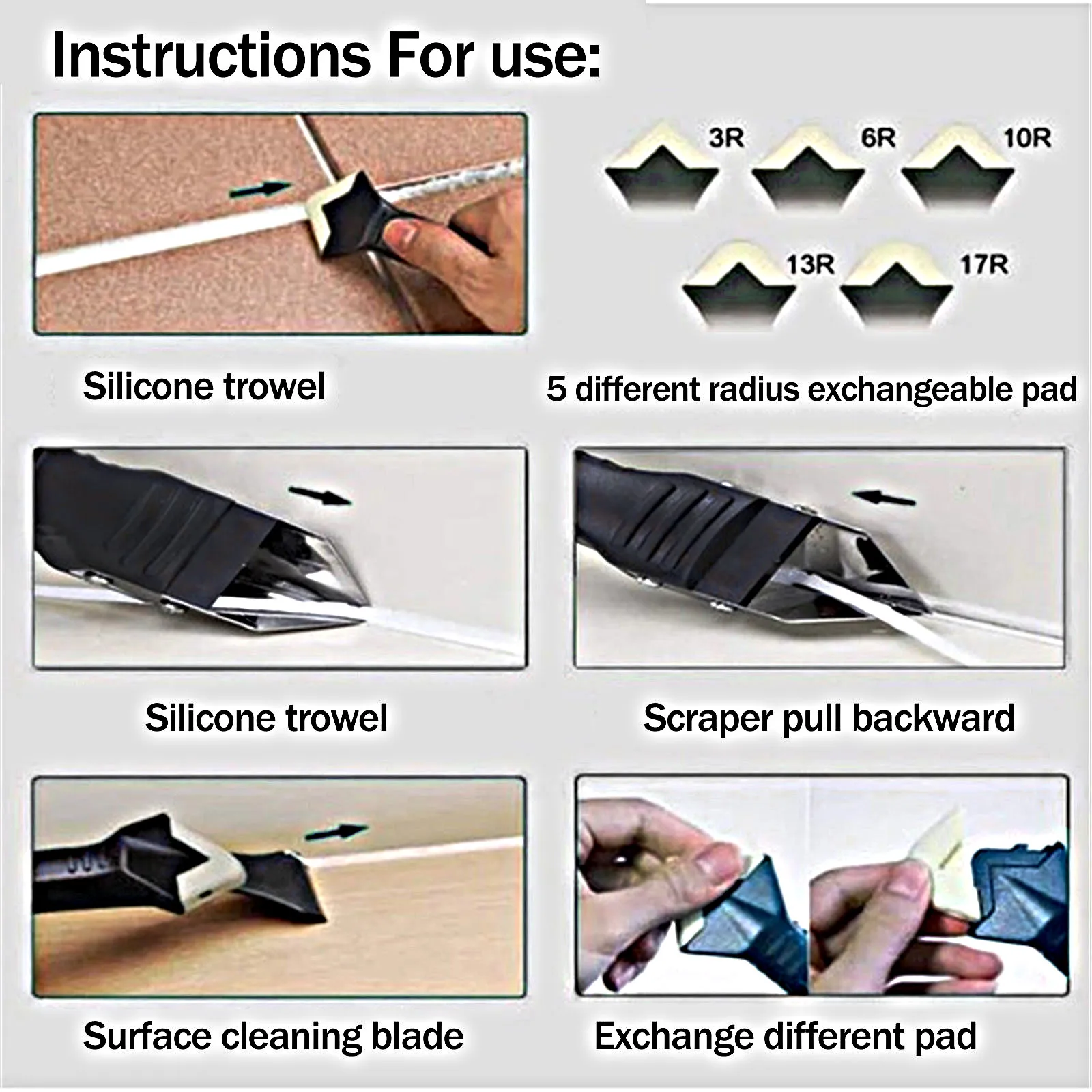 С 5 Размеры радиус Сменные колодки: 3R,6R,10R,13R,17R для создания 5 форм Круглый угол.