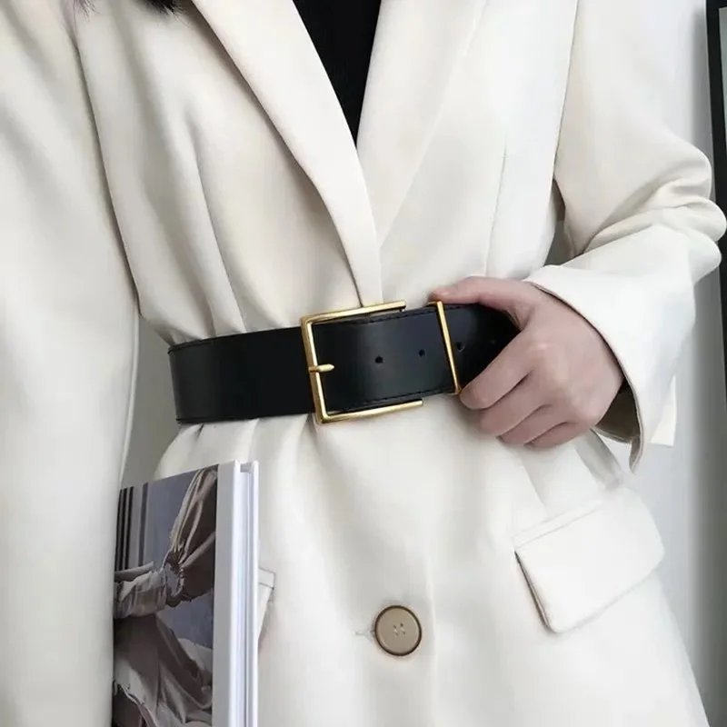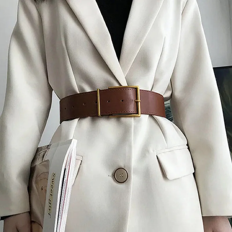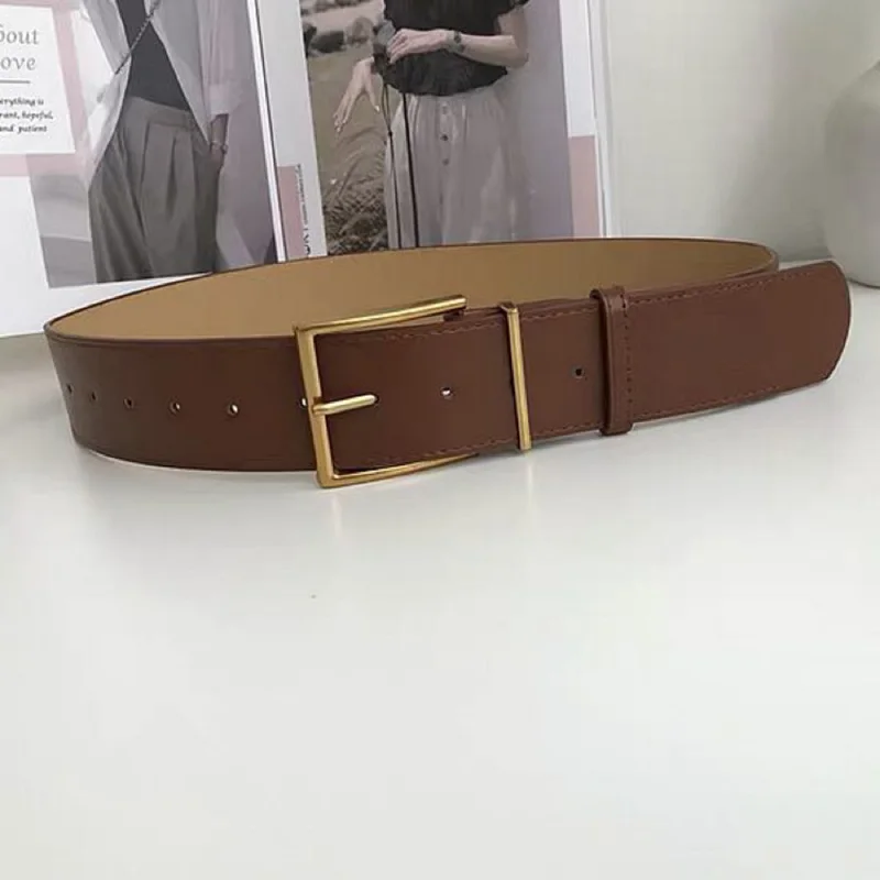 Ремень женский широкий из искусственной кожи, с металлической пряжкой, цвет черныйбежевый