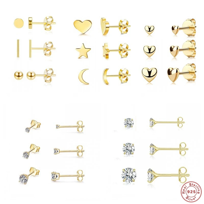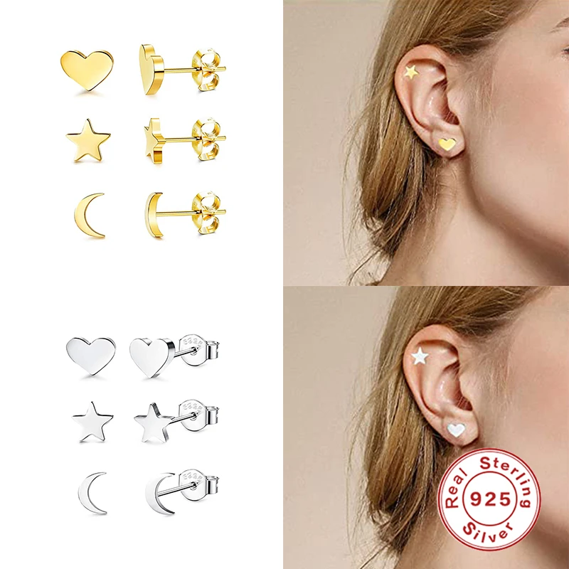 3 шт.компл. серьги-гвоздики S925 Стерлинговое Серебро Луна Звезда Любовь маленькие серьги для женщин циркониевые серьги plata 925 ювелирные изделия