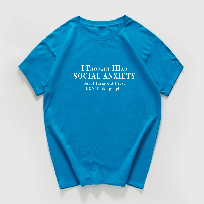 Забавная Мужская хлопковая футболка с надписью I think i had social worry, летняя уличная одежда, мужская одежда в стиле Харадзюку