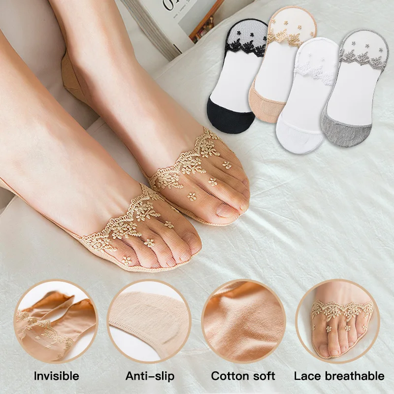 Носки женские прозрачные короткие кружевные, пикантные сетчатые прозрачные милые носки до лодыжки, невидимые Нескользящие белые, 5 пар, на лето