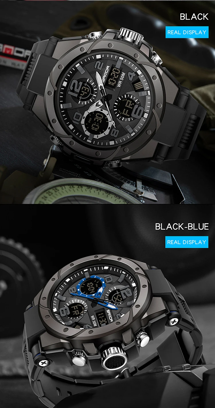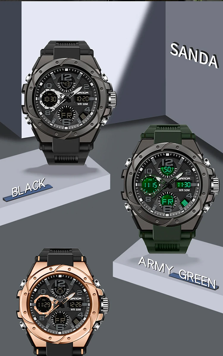 Часы наручные SANDA мужские с цифровым указателем, спортивные ударо...