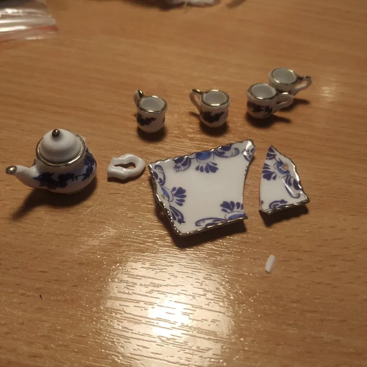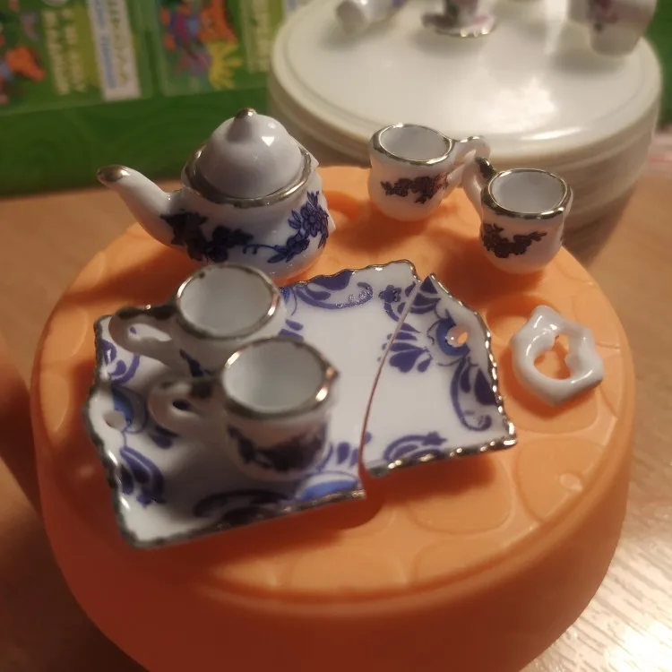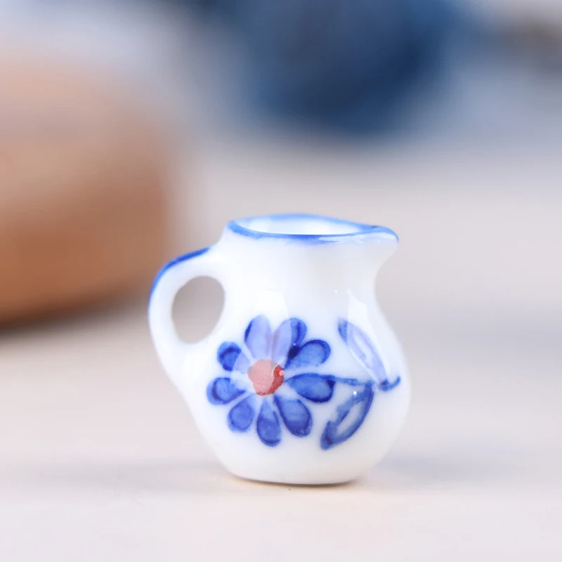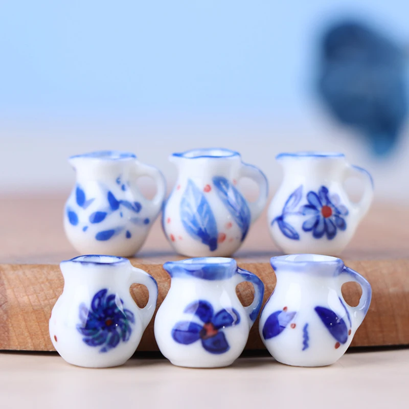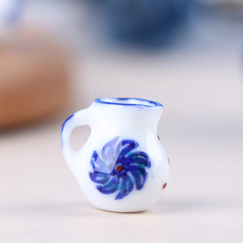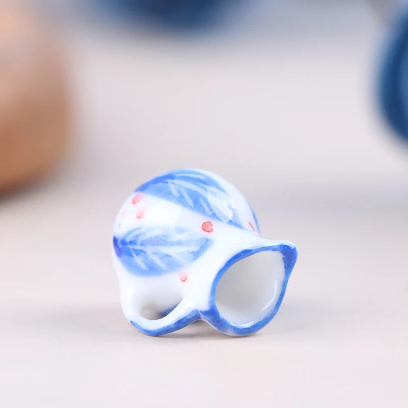 6 шт. 112 весы кукольный домик Миниатюрный Мини Фарфор Синий принт молочные горшки чайник водяные чашки набор Куклы Украшение для комнаты мебели