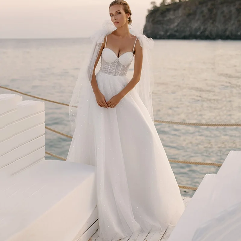 Винтажные свадебные платья в стиле бохо, корсет с кристаллами, блестящий женский халат, пляжные свадебные платья, семейный корсет