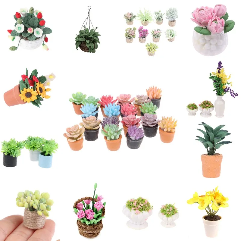 Кукольный дом, миниатюрные цветы, сказочный садовый орнамент, миниатюрное растение в горшке, декор для кукольного домика, модель бонсай, Декор для дома, 112