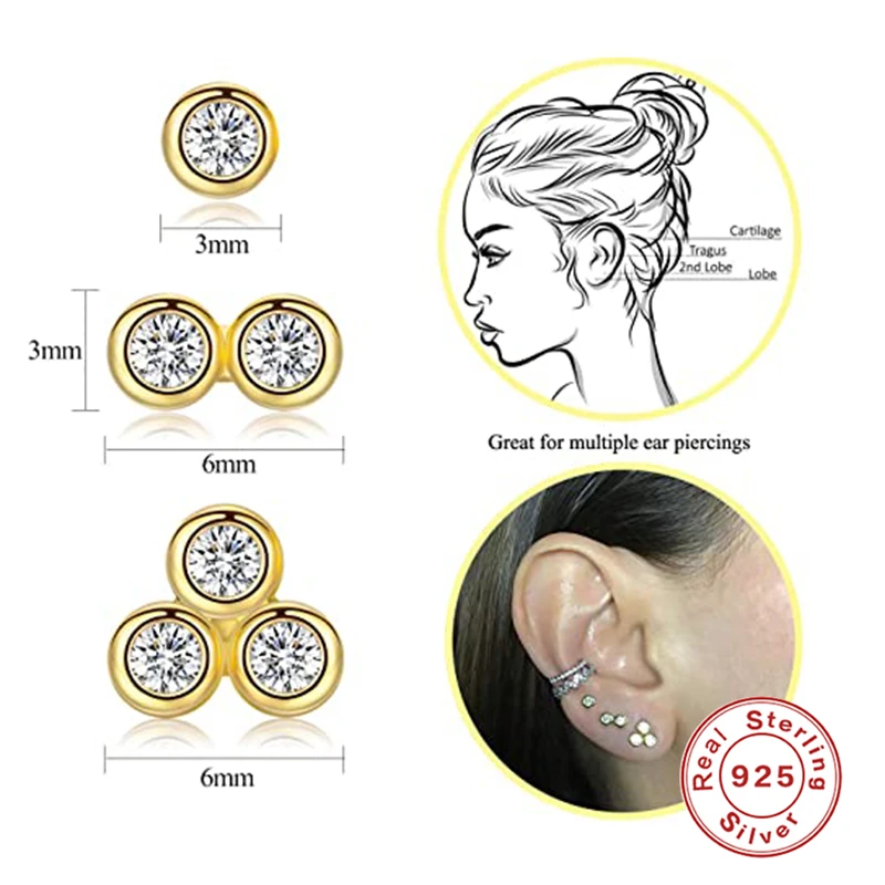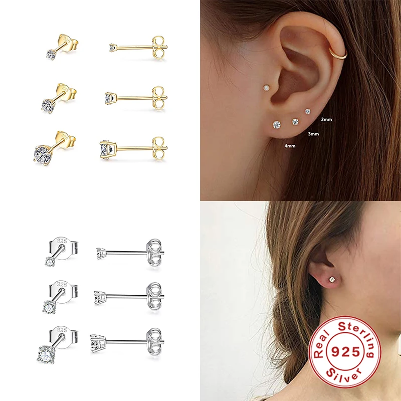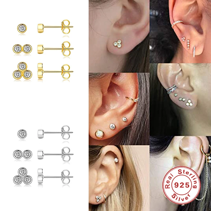 Simple Round Stud EarringsPiercing Zircon Crystals Stud Earrings