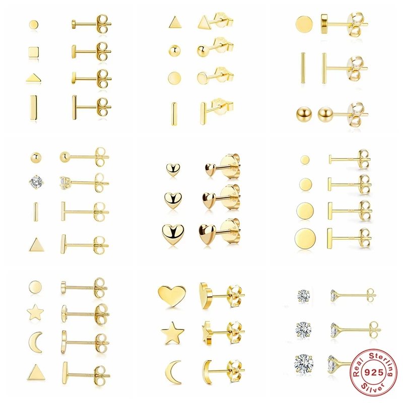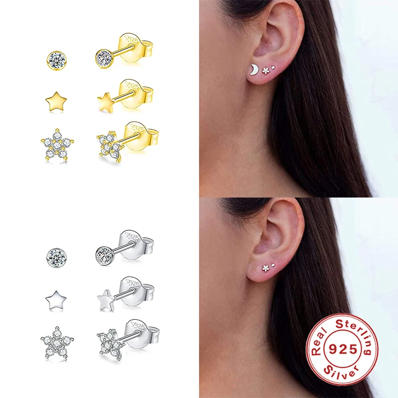 Женские маленькие серьги-гвоздики с бриллиантами Aide, маленькие серьги из стерлингового серебра 925 пробы, сердце, месяц, звезда, тренд 2021, корейская бижутерия