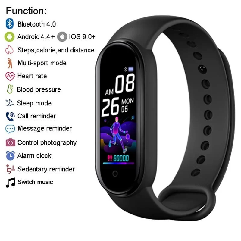 Смарт-часы M5 с защитной пленкой, спортивный трекер, смарт-браслет ...