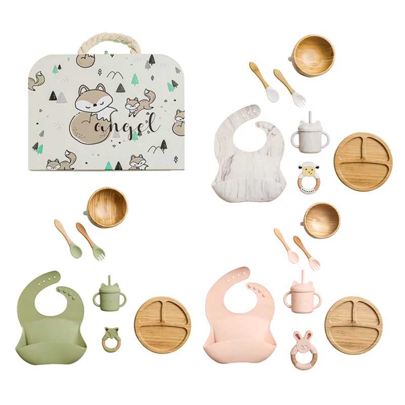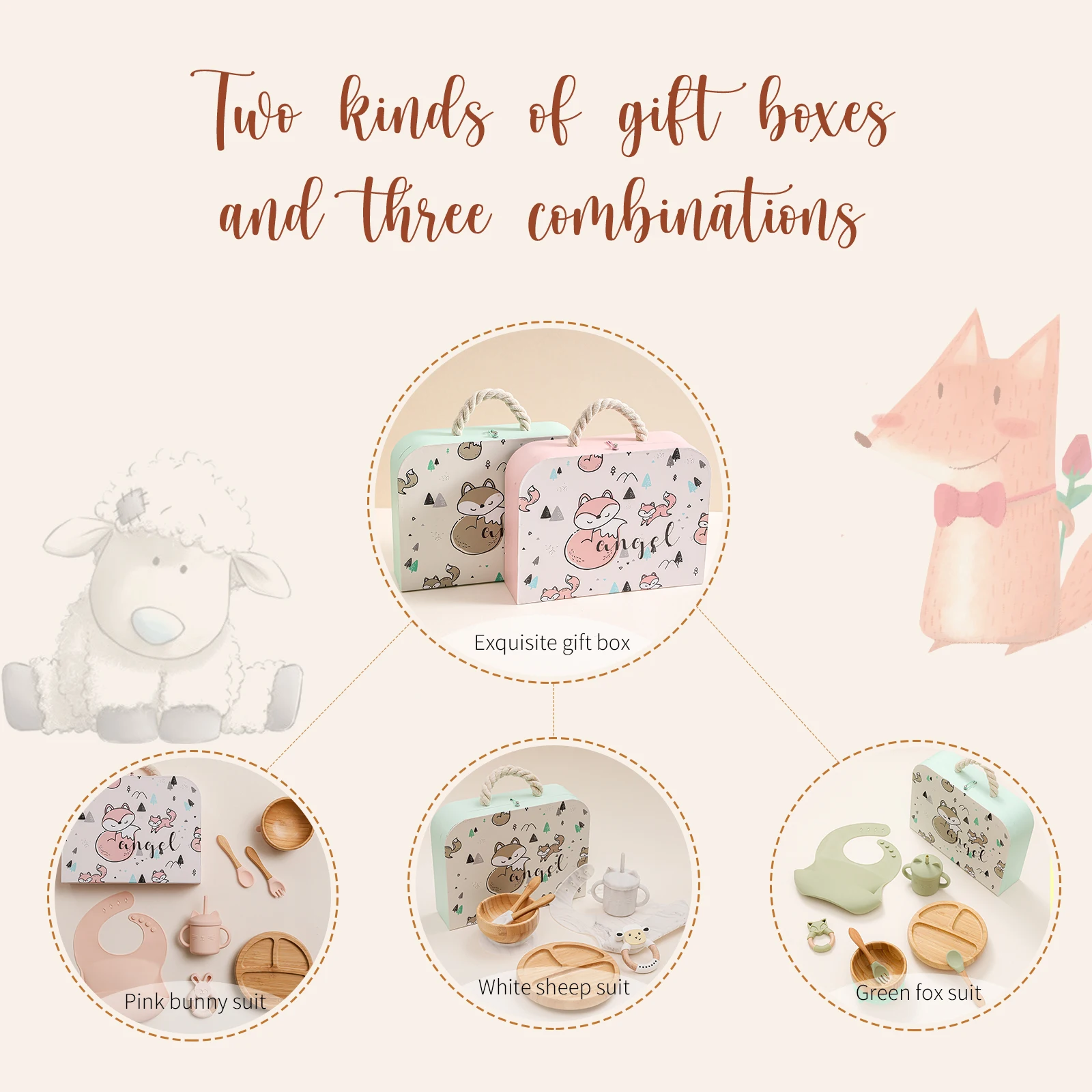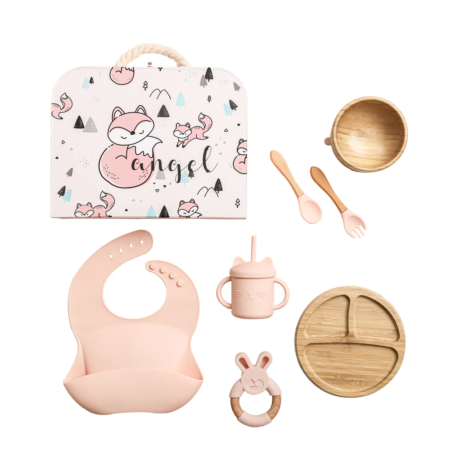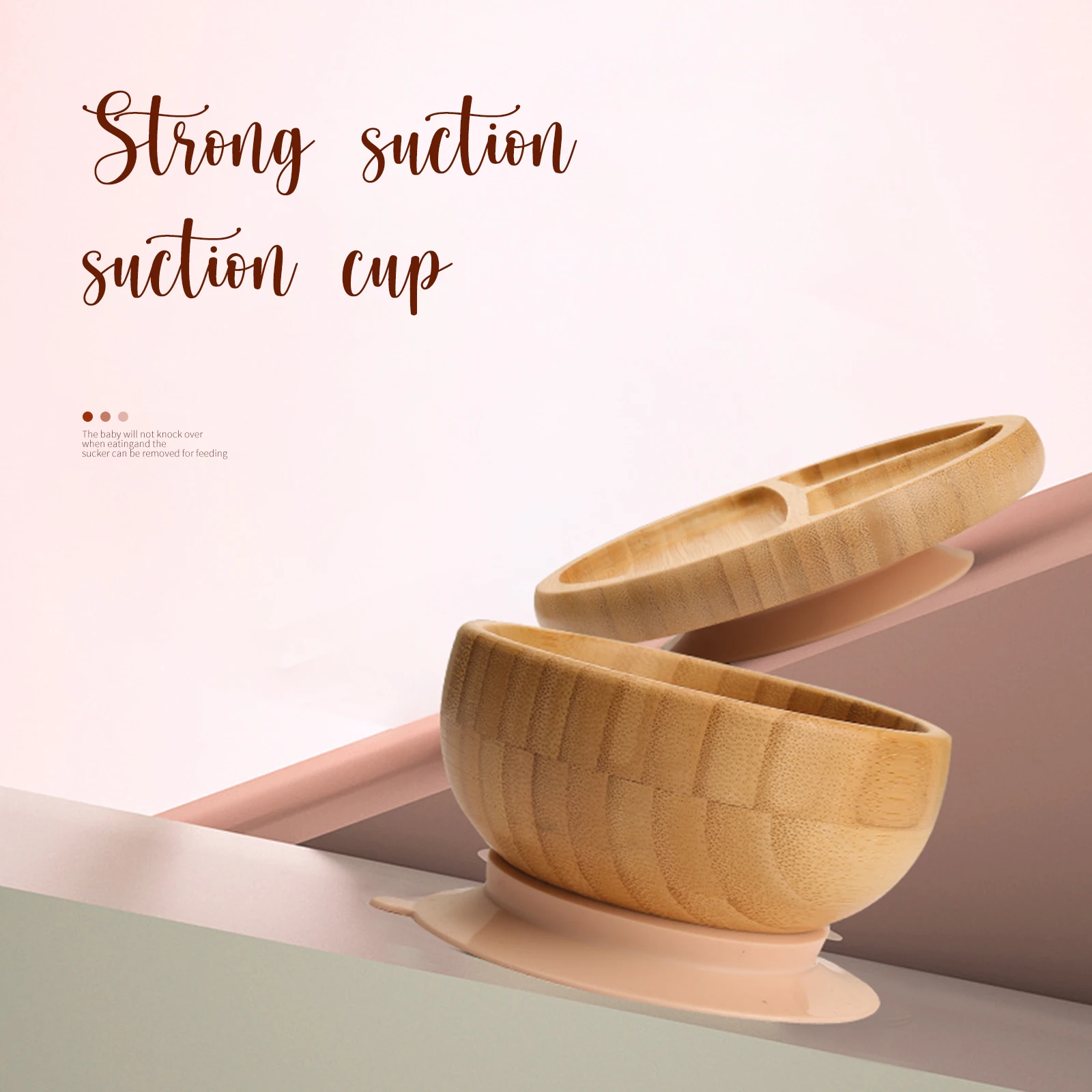 Новинка 2021, Набор бамбуковой посуды для кормления детей с защитой от проливания, пищевой продукт, не скользящий продукт для детей, Бамбуковая чаша, силиконовая ложка, Набор чашек
