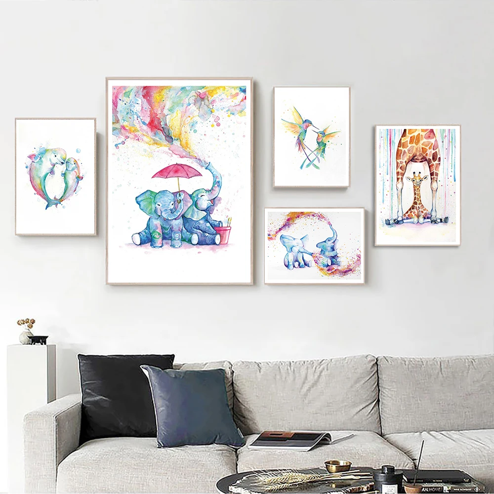 Художественный плакат с милыми животными, пеной, белугой, живопись, принты, колибри, жираф, холст, живопись, слон, Настенная картина, детская комната De