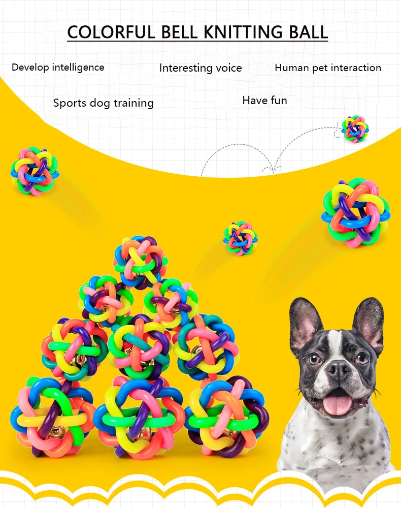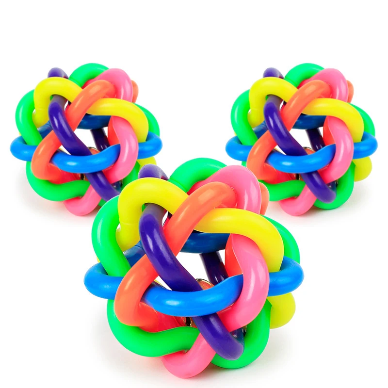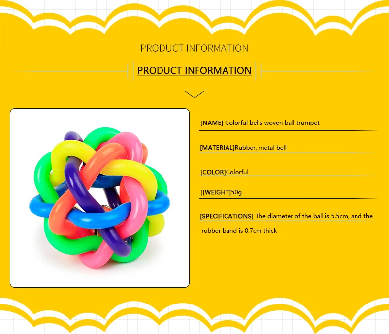 1. Резиновый пояс мяч Сфера сделана из переплетенного плетения с красочными резиновыми лентами, с отличными материями, также владелец может быть уверен, и собачки могут веселиться. 2. Металлические колокольчики Тканый шар имеет встроенный металлический колокольчик, который звучит при прикосновении, и эта собака ясна и не жесткая.