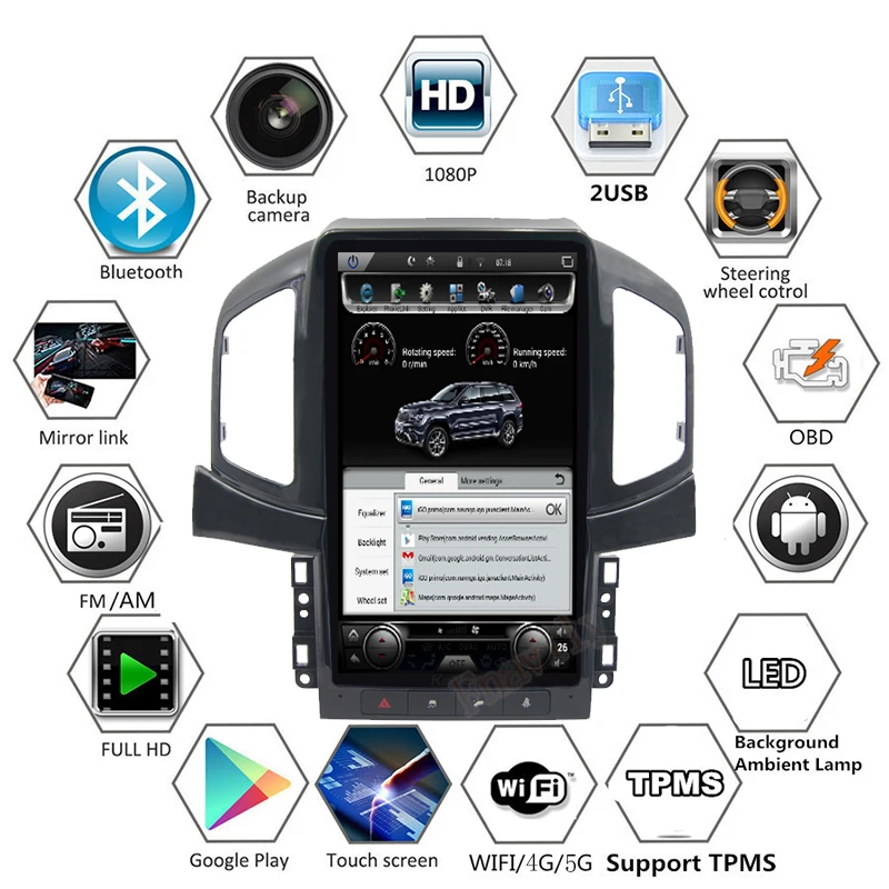 Автомагнитола на Android 9 для Chevrolet Captiva, мультимедийная система, Авторадио, автомобильный Dvd-плеер, GPS-навигация, вертикальный экран, стиль Тесла