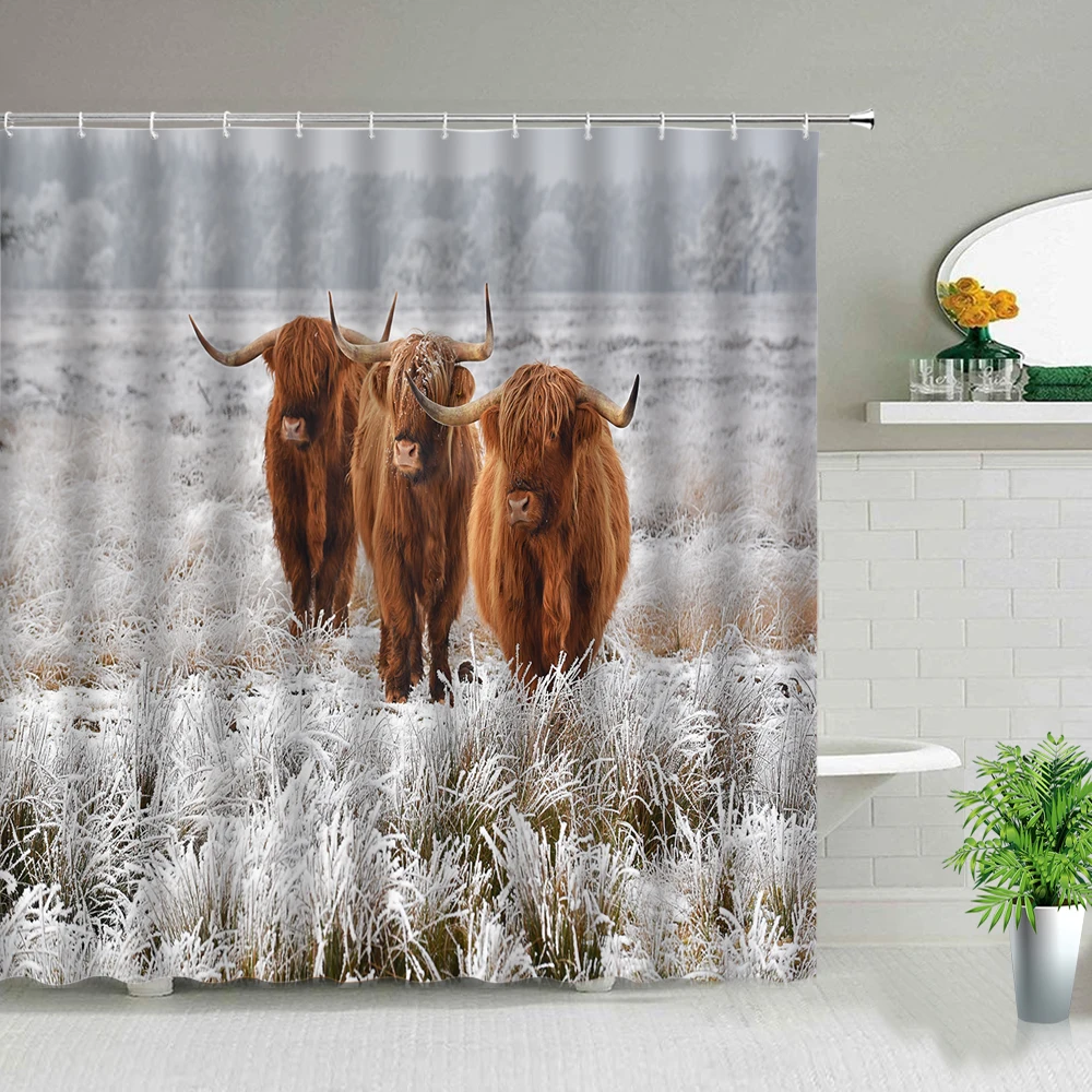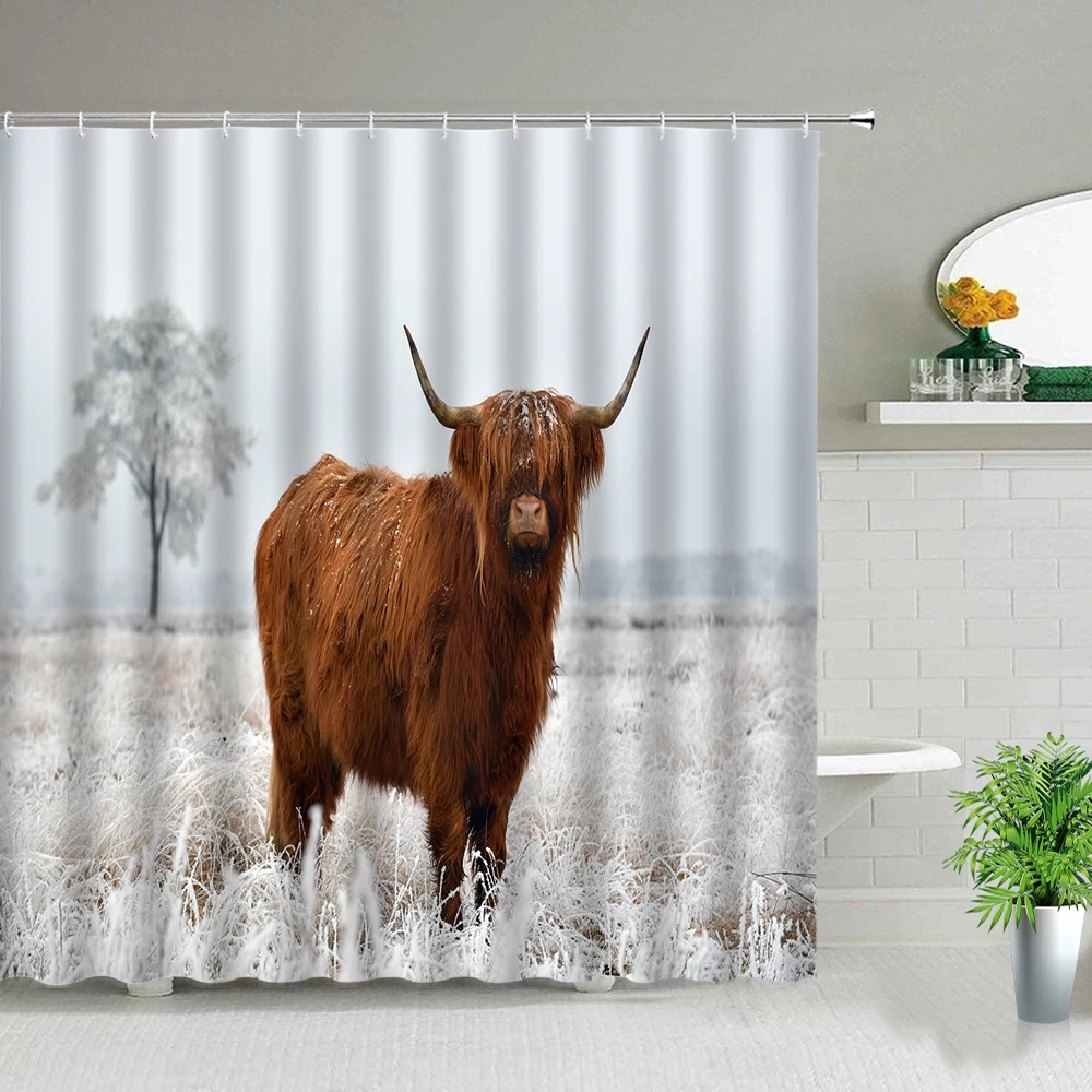 Шторы для душа Highland с изображением коровы и животных, зимний ландшафт, водонепроницаемые тканевые фоновые занавески для ванной, Настенный декор, Висячие занавески