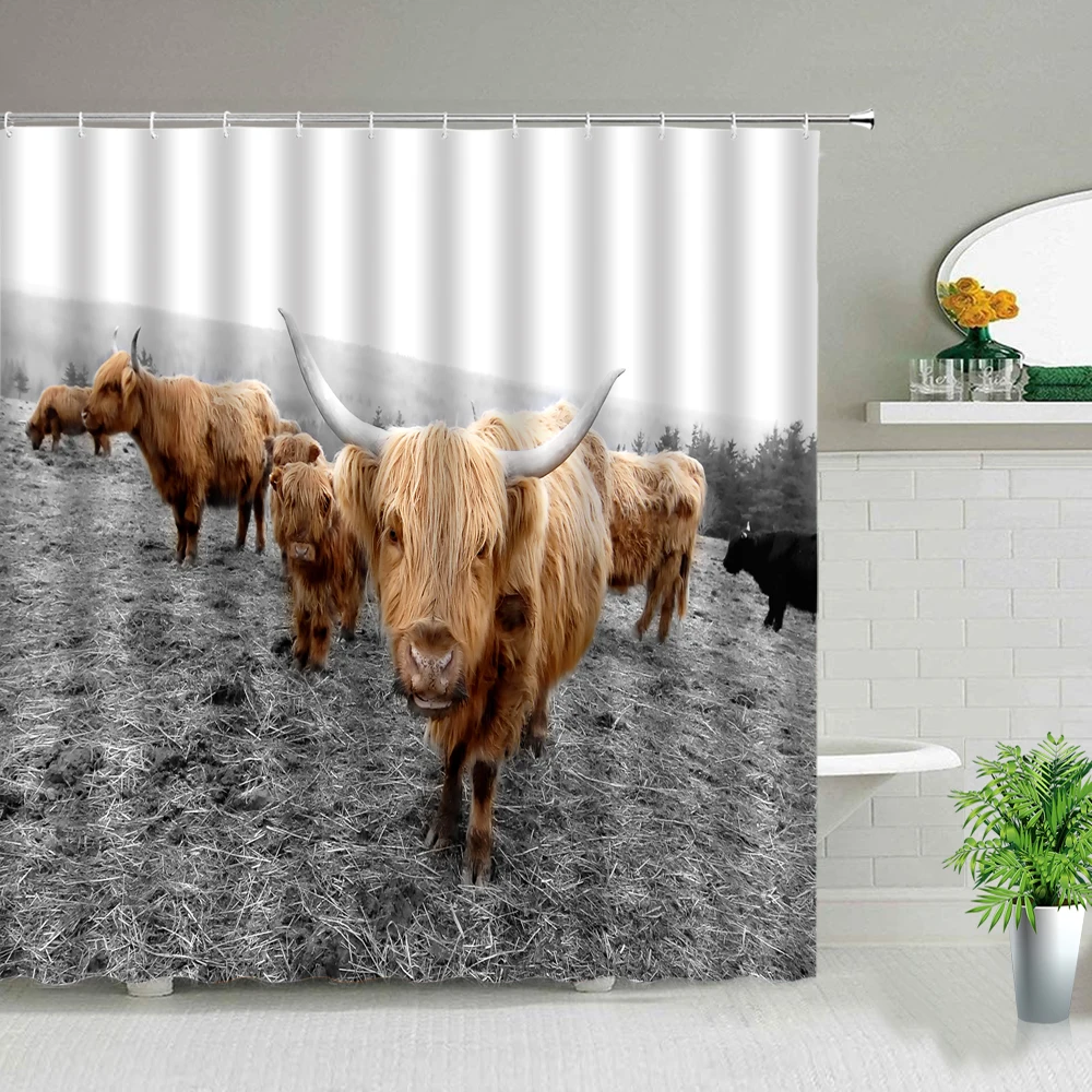 2021 Highland корова тема занавеска для душа s 3D печать водонепрон...