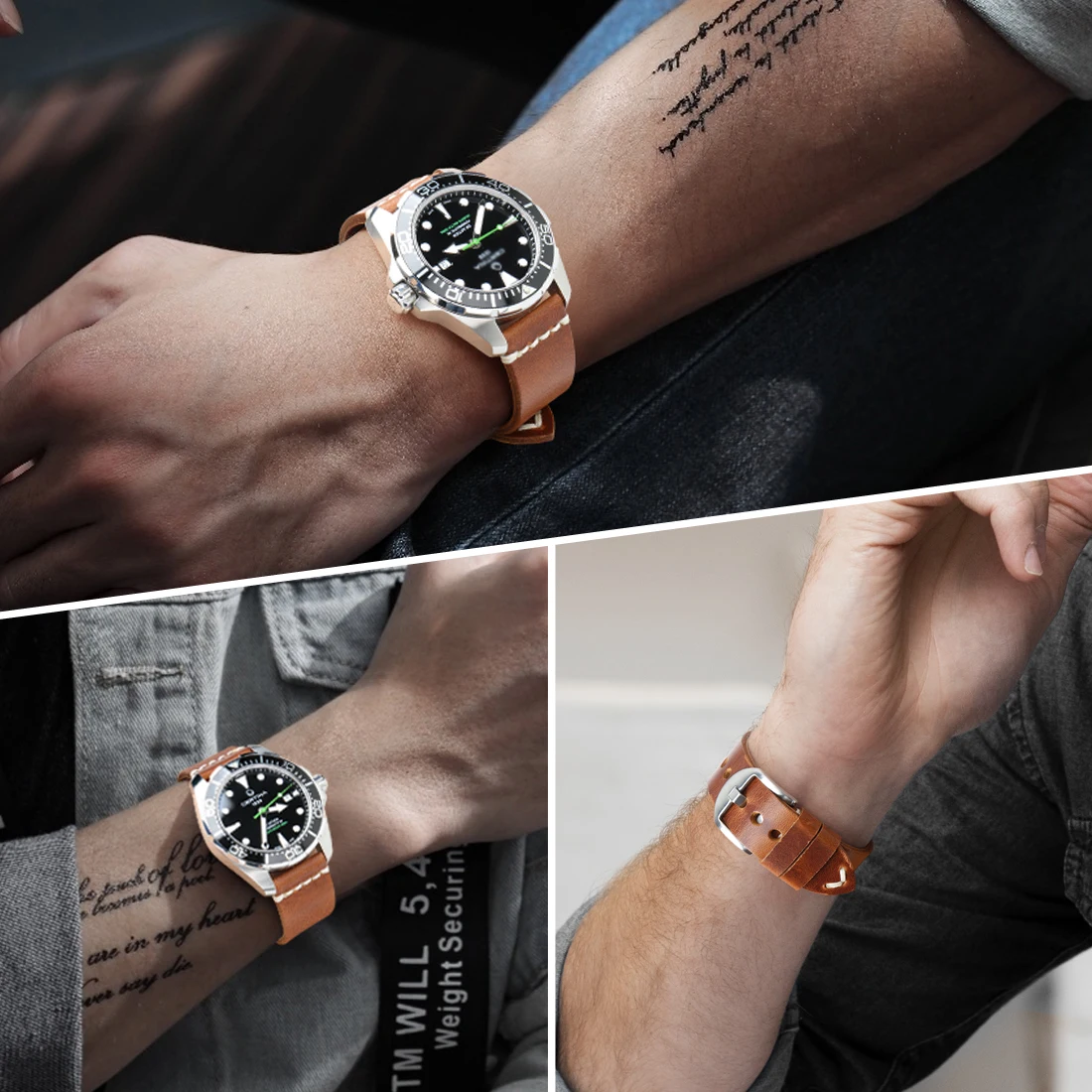 Ремешок MAIKES для часов, винтажный браслет из натуральной кожи светло-коричневого цвета с пряжкой из нержавеющей стали, 20 мм 22 мм 24 мм