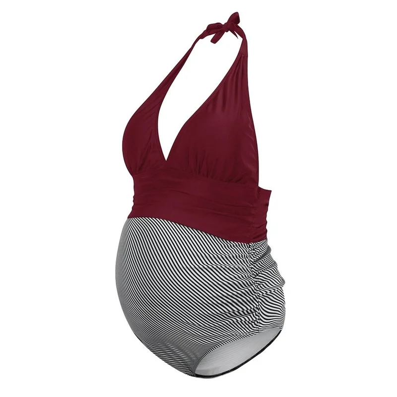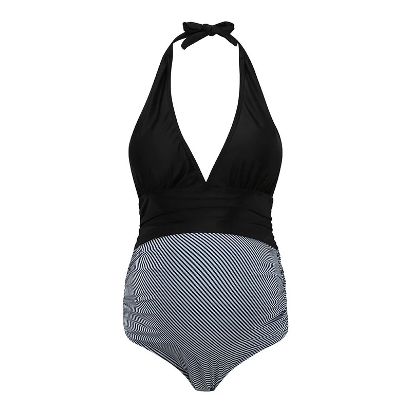 Купальник для беременных купальный костюм Цельный купальник для беременных женщин сексуальный с глубоким V-образным вырезом на бретельках высокая эластичность пэчворк бикини