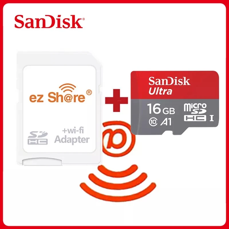 Беспроводной Wi-Fi адаптер ezshare + Sandisk Ultra, карта памяти Micro SD на 16 ГБ, 32 ГБ, класс 10, беспроводная TF-карта, карта памяти Micro SD на 64 ГБ, 128 ГБ