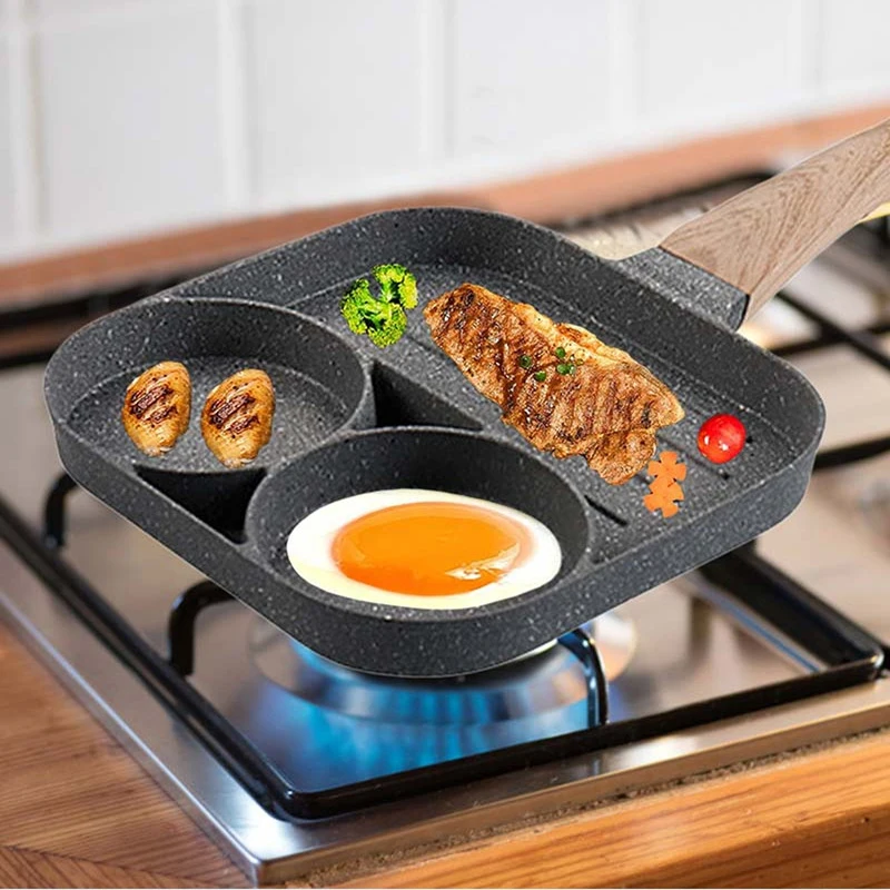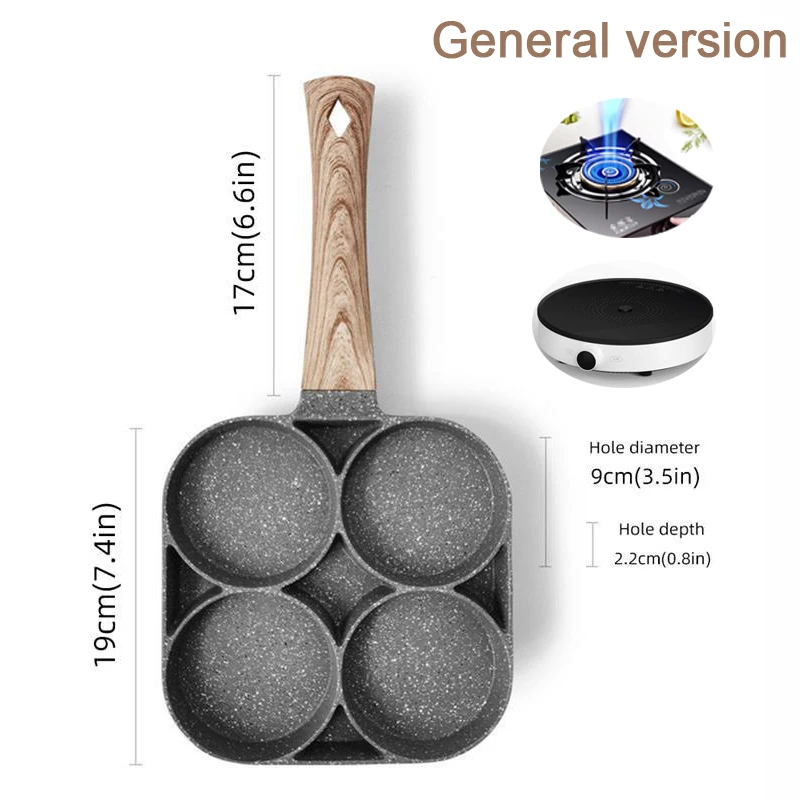 Сковорода утолщенная сковорода для омлета с 4 отверстиями, антипригарная, для яиц, блинов, стейков, приготовления яиц, ветчины, посуда для приготовления завтрака