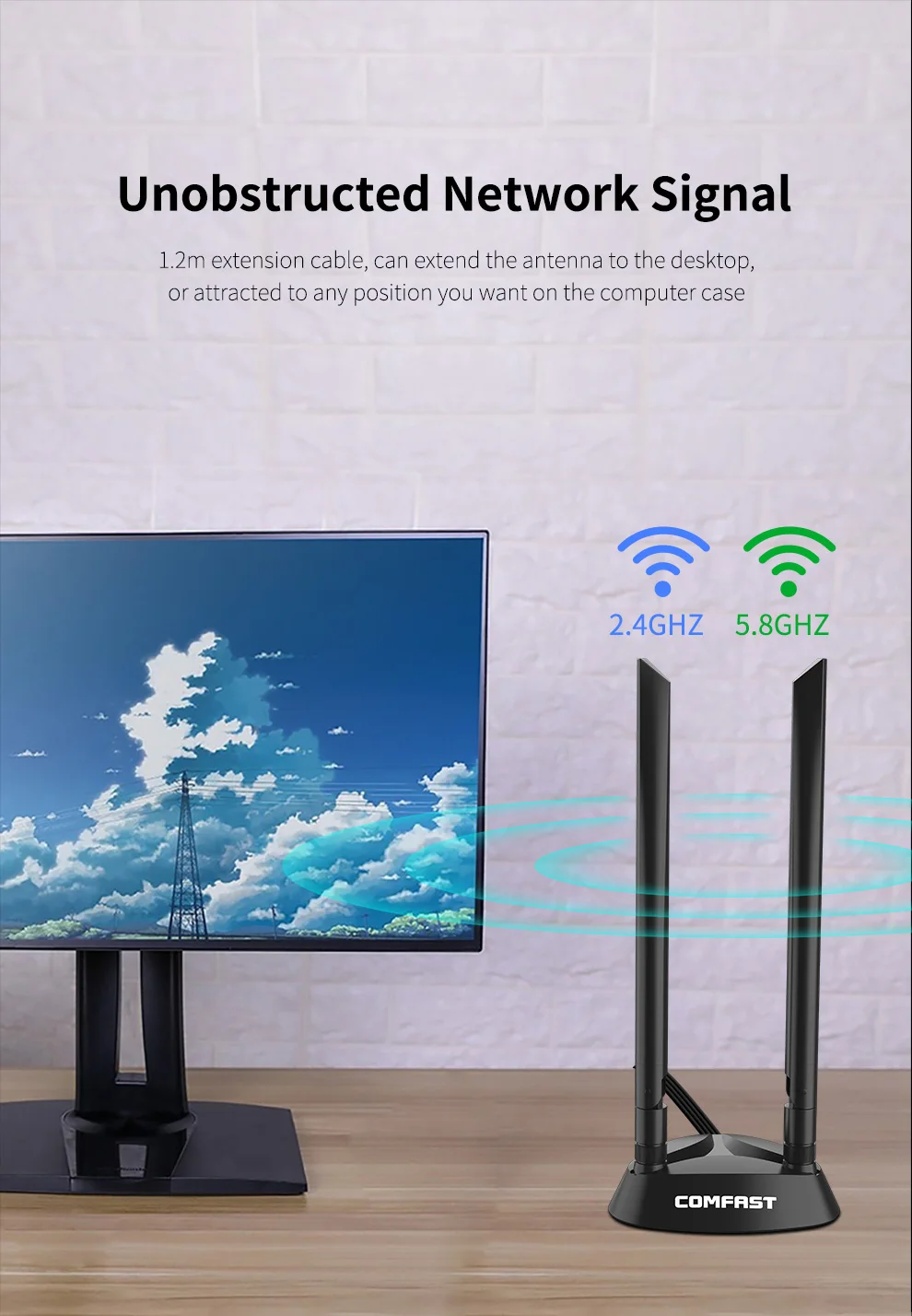 Wi-fi антенна Расширение с высоким коэффициентом усиления 2,4 + 5,8G SMA 1,2 м кабель магнитное основание для PCie Wi-fi адаптер для карты беспроводной маршрутизатор точка доступа