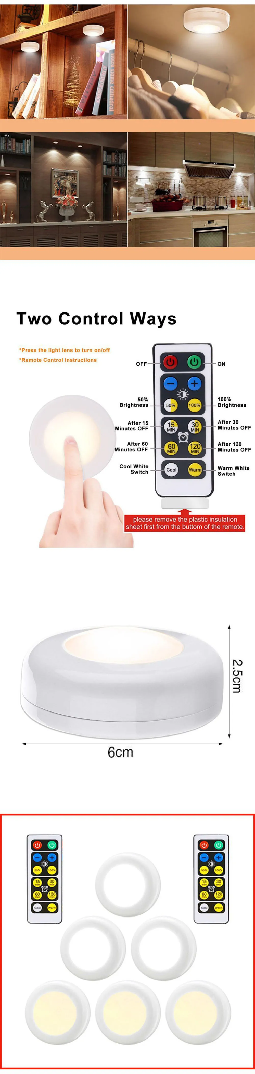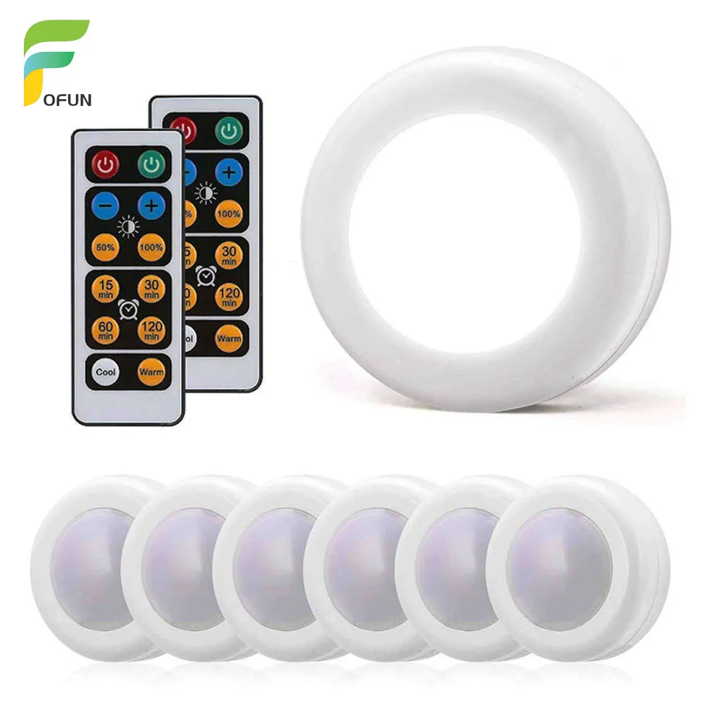 Светильник Fofun для шкафа, беспроводной приглушаемый сенсорный двухцветный СВЕТОДИОДНЫЙ ночник с питанием от батарейки и пультом дистанционного управления, подходит для кухни