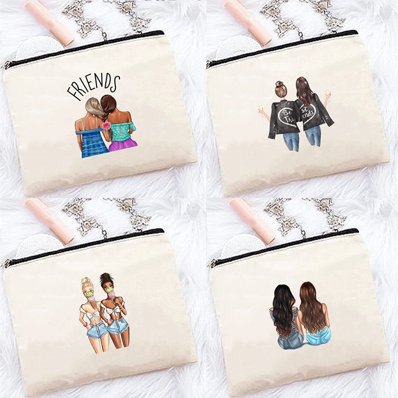 Косметичка Best Friend с принтом для женщин, сумочка для косметики, несессер, модный органайзер для косметики, Дамский клатч, подарок для друга