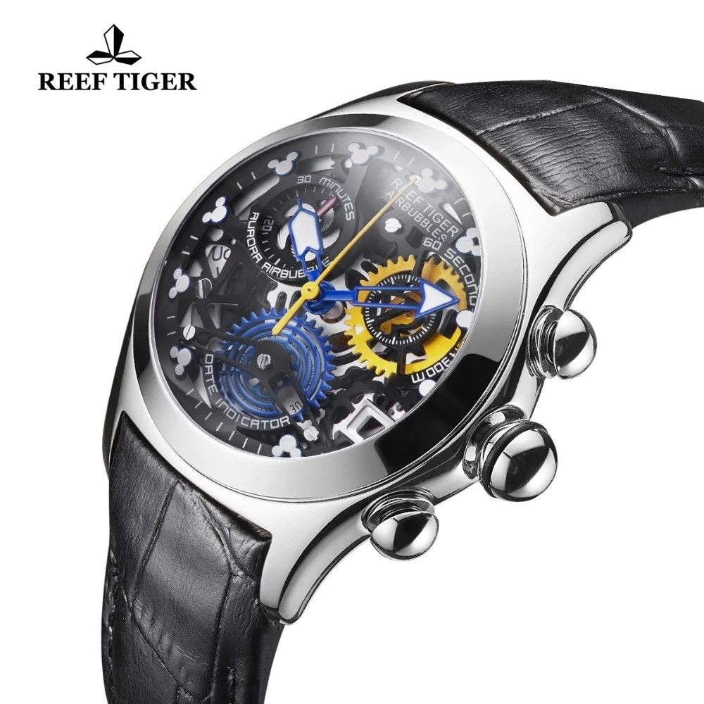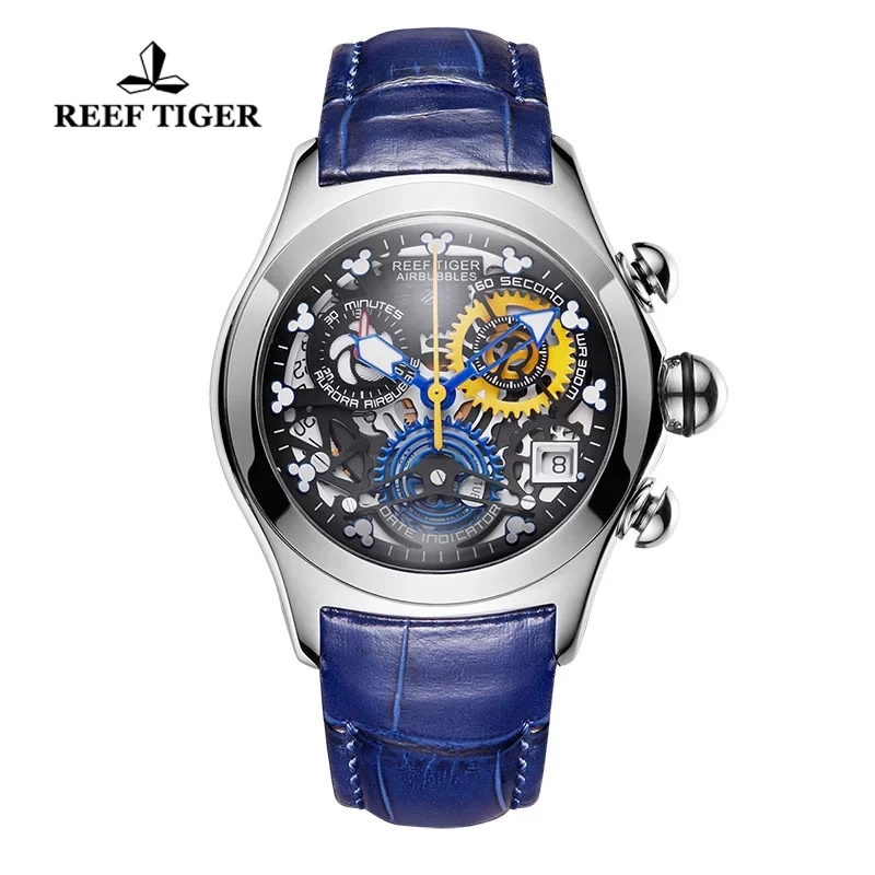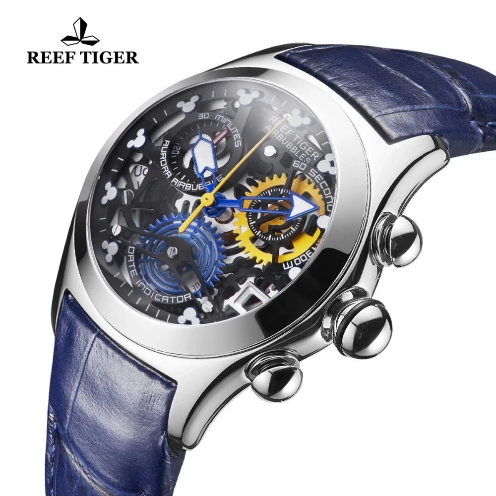 Риф Тигр новый дизайнерский Топ Роскошные брендовые Модные женские кварцевые часы стальной каркас синего цвета из натуральной кожи, с ремешком, спортивные часы