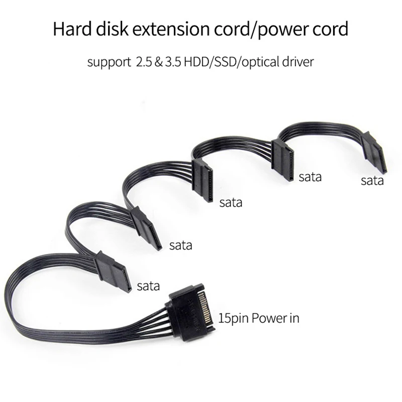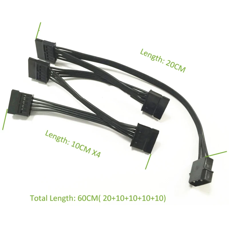 Разветвитель блока питания для жесткого диска, 4-контактный разъем IDE, от 1 до 5 SATA, кабель для ПК Sever 18AWG, 4-контактный до 15-контактный разъем