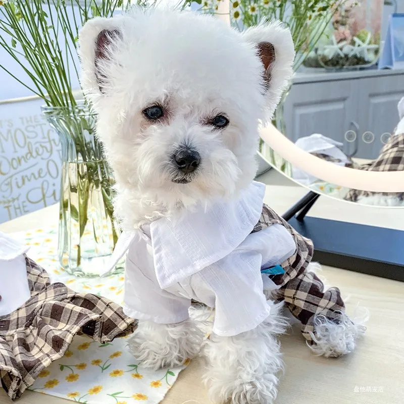 Одежда для домашних животных для девочек и мальчиков, одежда для маленьких собак с клетчатой юбкой цвета хаки костюм кошки XS XL, Летние красивые товары для чихуахуа, Мальта, котенка
