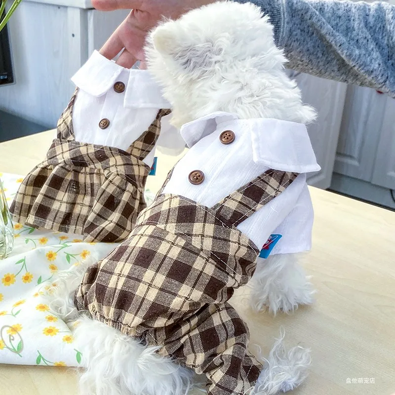 Парная одежда для домашних животных для девочек и мальчиков, одежда для маленьких собак с хаки, клетчатая юбка, костюм для кошки XS XL, летние крутые товары для чихуахуа, Мальта, котят