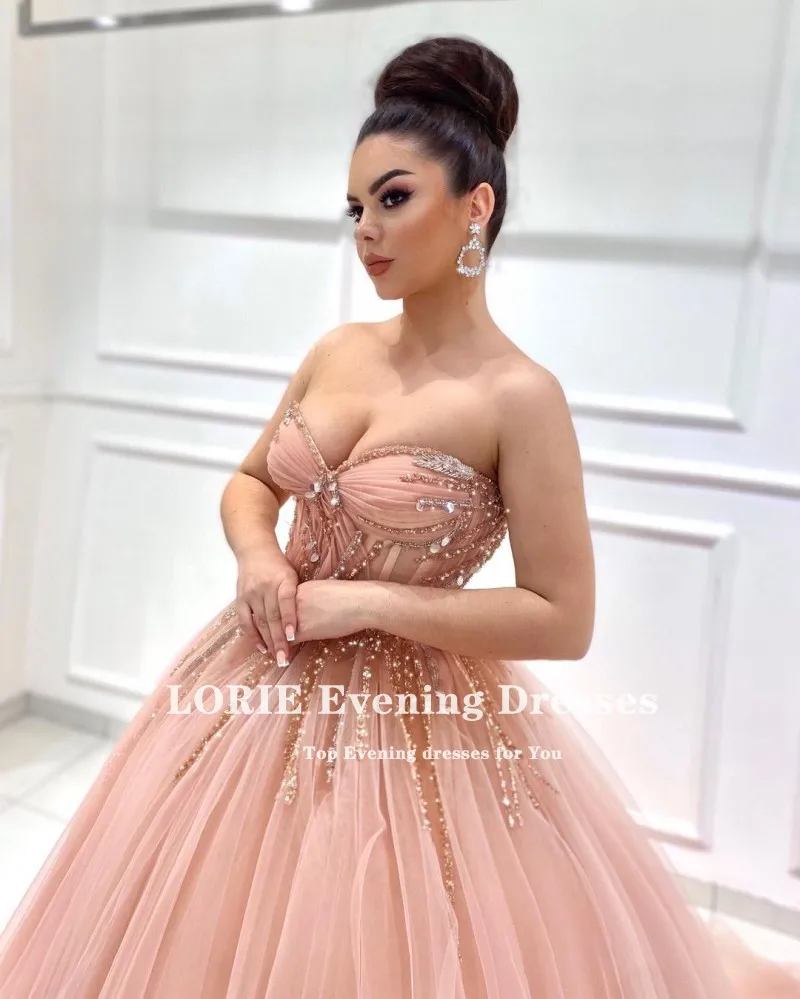 LORIE Baby розовые кристаллы вечерние платья бальное платье милое Стразы выпускное платье Тюлевое вечернее платье для девочки