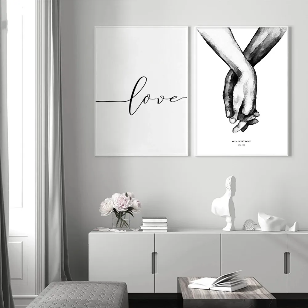 Абстрактная линия, плакат с любовным сердцем, холст с удержанием рук, принты, черно-белое бикини, Женская картина, нордическое настенное художественное украшение