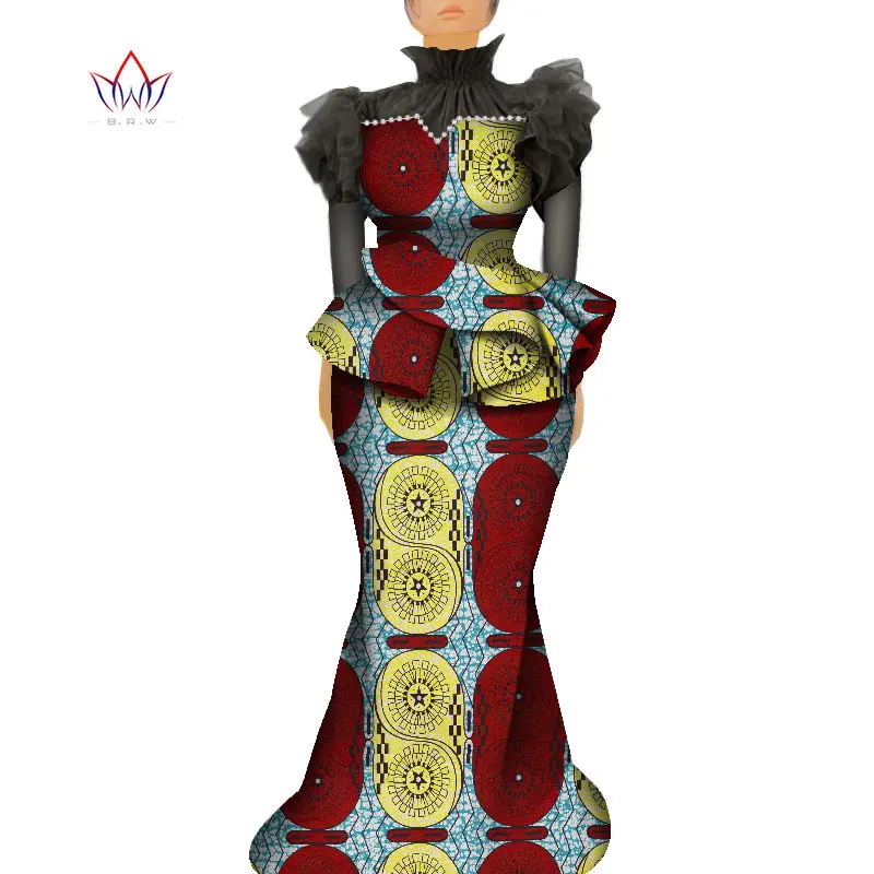 Африканская традиционная одежда для женщин, элегантные комплекты, африканская одежда с длинным рукавом, женская одежда, костюмы из 2 частей, WY012