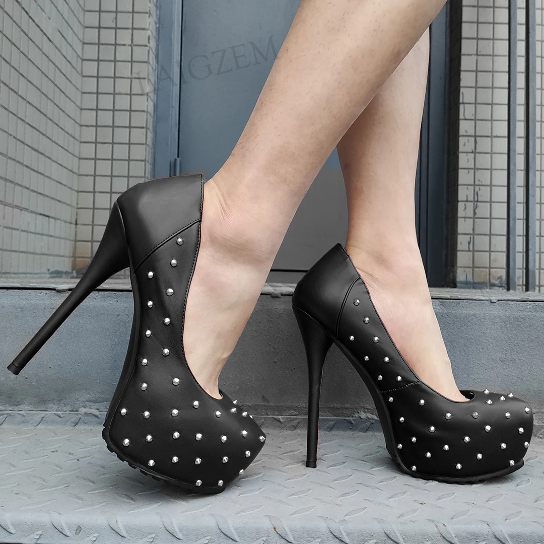 LAIGZEM Women Platform Heels Faux Leather Spring Summer Stiletto Heels Club Zapatos Sandals Shoes Woman Large Size 42 47 51 52