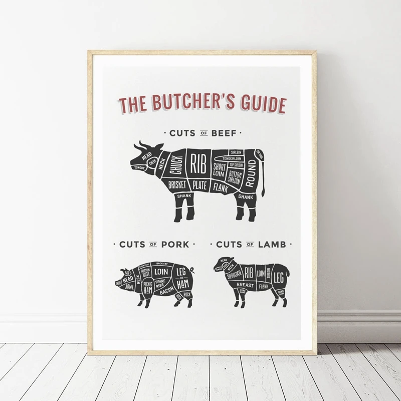 Руководство мясника плакат печать говядины свинины мясника схема Ка...