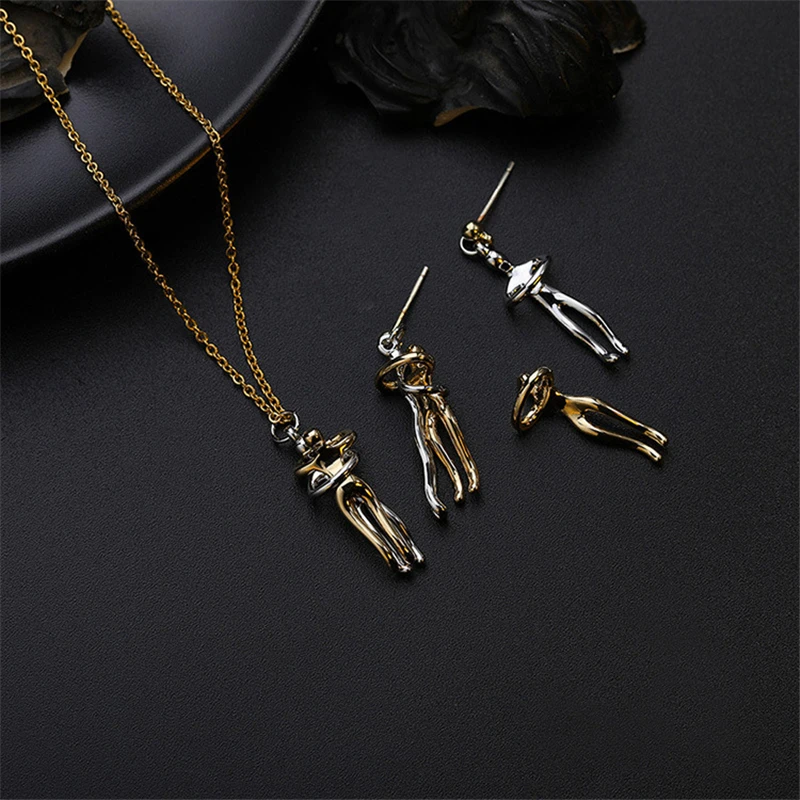 Оригинальное креативное ожерелье для пары, женское обнимающееся ожерелье с подвеской злодей, характерное двухцветное ожерелье с цепочкой до ключицы для женщин