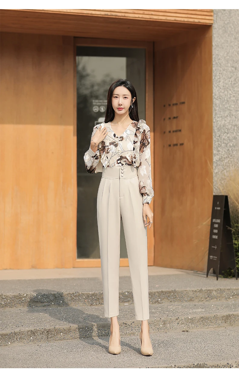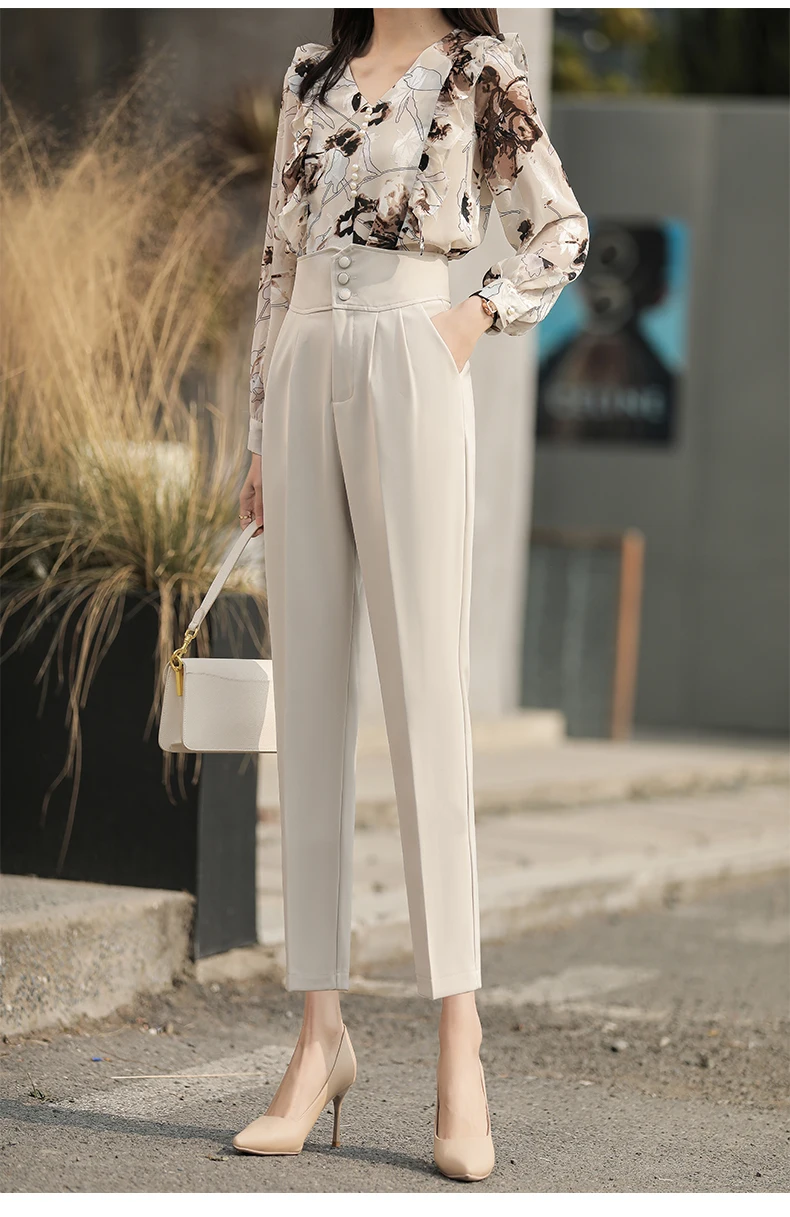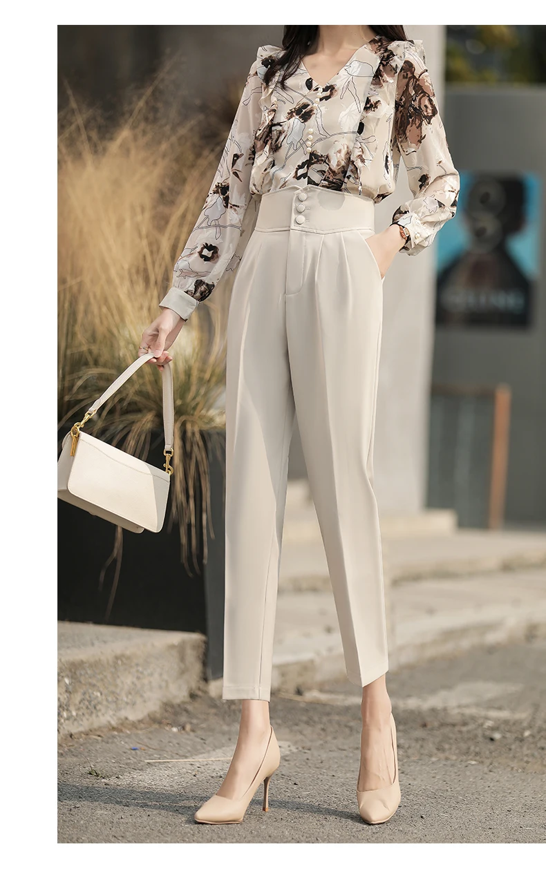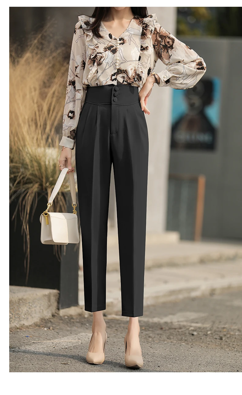 Брюки-султанки женские с завышенной талией, драпированные брюки до щиколотки, свободные прямые Костюмные штаны, весна-осень