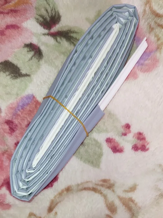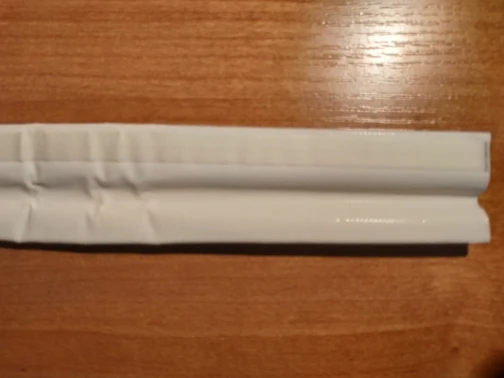 время на отзыв завершается. ещё не использовал - жарко и так. уплотнитель, ~вспененый полимер , похожий на поролон, в скользкой оболочке похожей на ткань. есть самоклеющая полоска. с виду интересный. прибыл свёрнутым и смятым. вмятины не особо распрямляются.