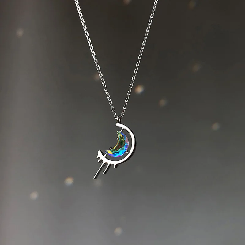 925 стерлингового серебра с кисточками Moon ожерелье с подвеской в виде креативная элегантная цепочка с кулоном вечерние ювелирные изделия для женщин, девушек, dz509