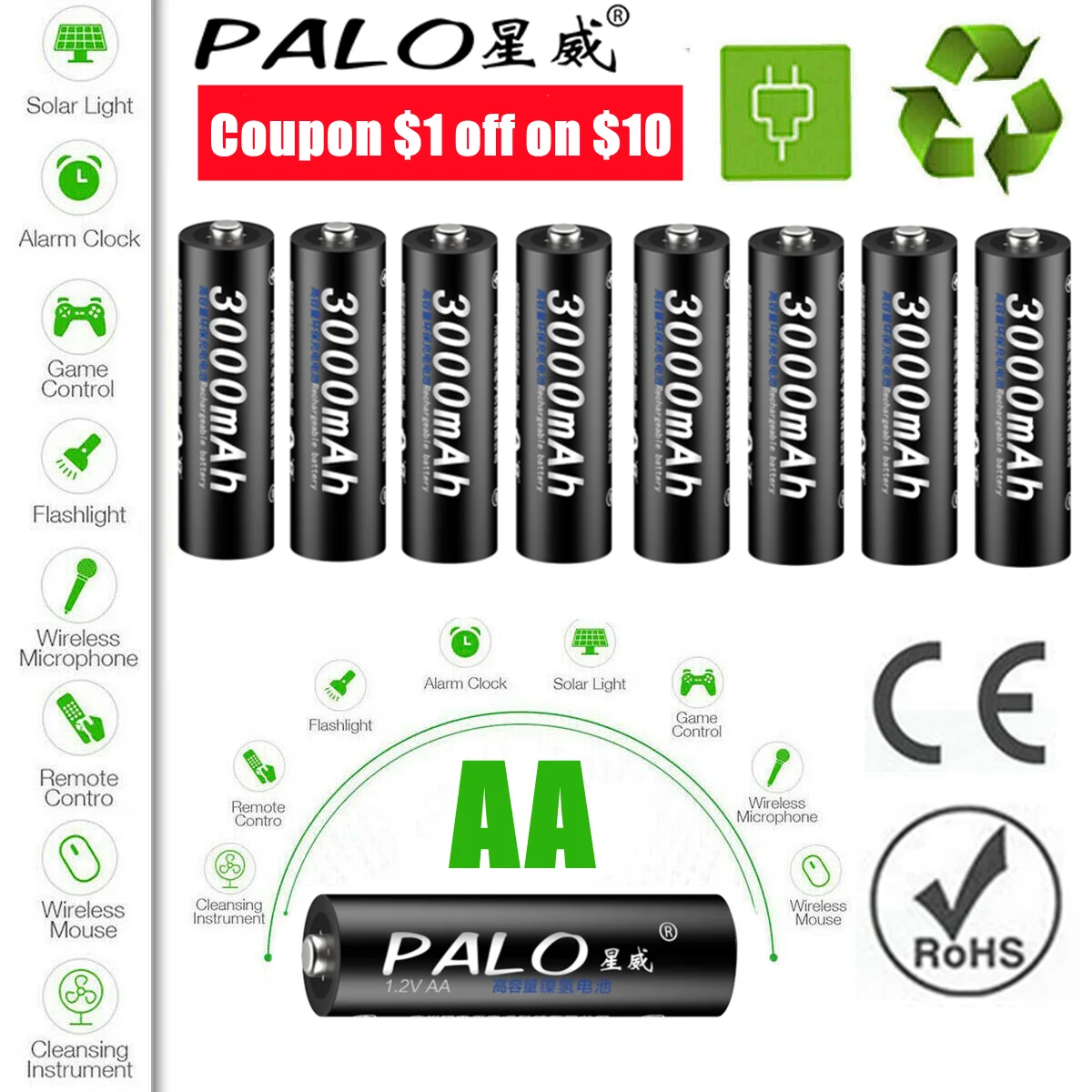 PALO 1,2 V 3000mAh NI MH AA аккумуляторные батареи NI-MH перезаряжаемые aa долговечная батарея для солнечного светильник игрушка-фонарик светильник игрушечный автомобиль