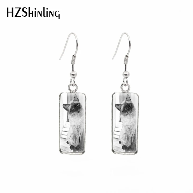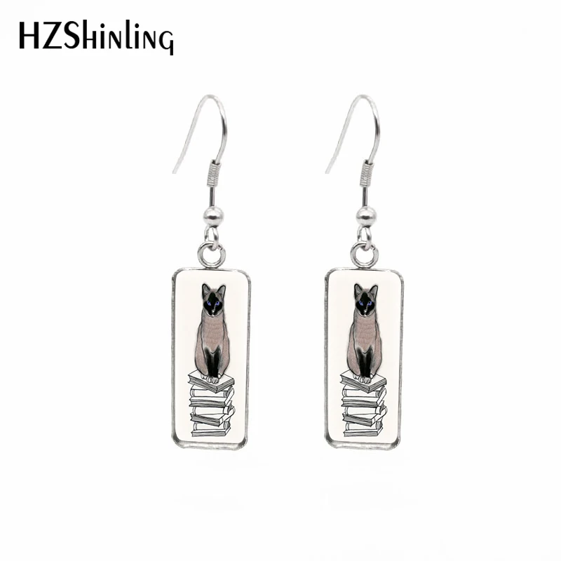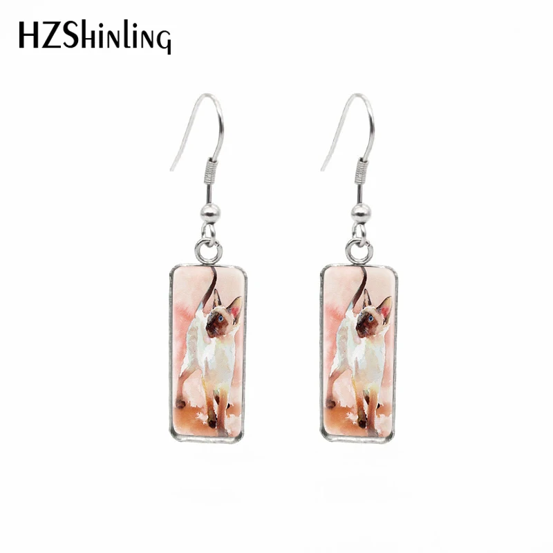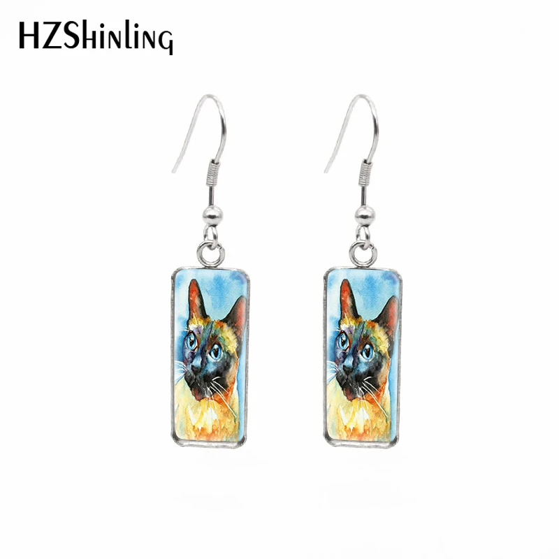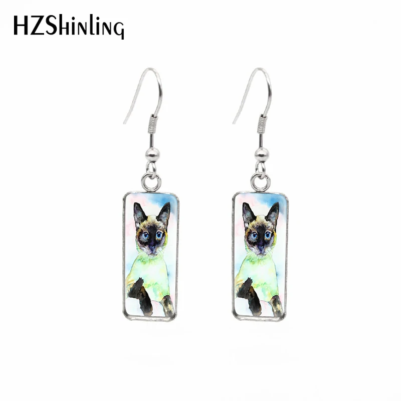 Новинка 2021 г., прямоугольные серьги в виде сиамского кота, милые серьги с крючком в виде рыбы, стеклянный кабошон, ювелирные изделия ручной работы