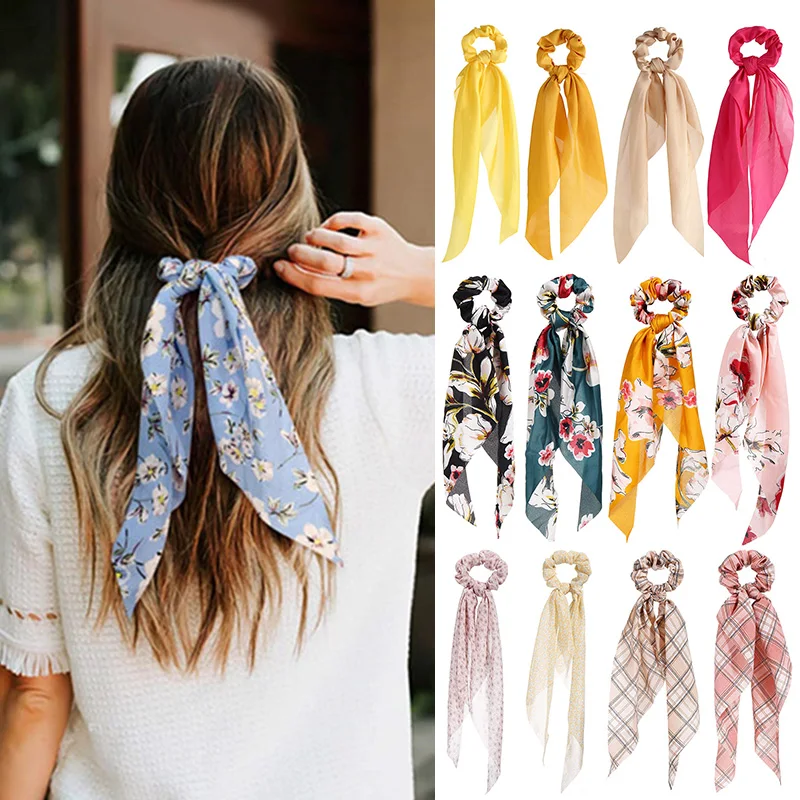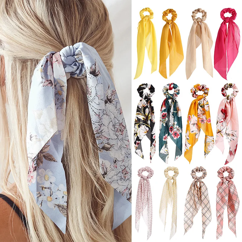 Модные резинки для волос с цветочным рисунком, длинный хвост, шарф,...