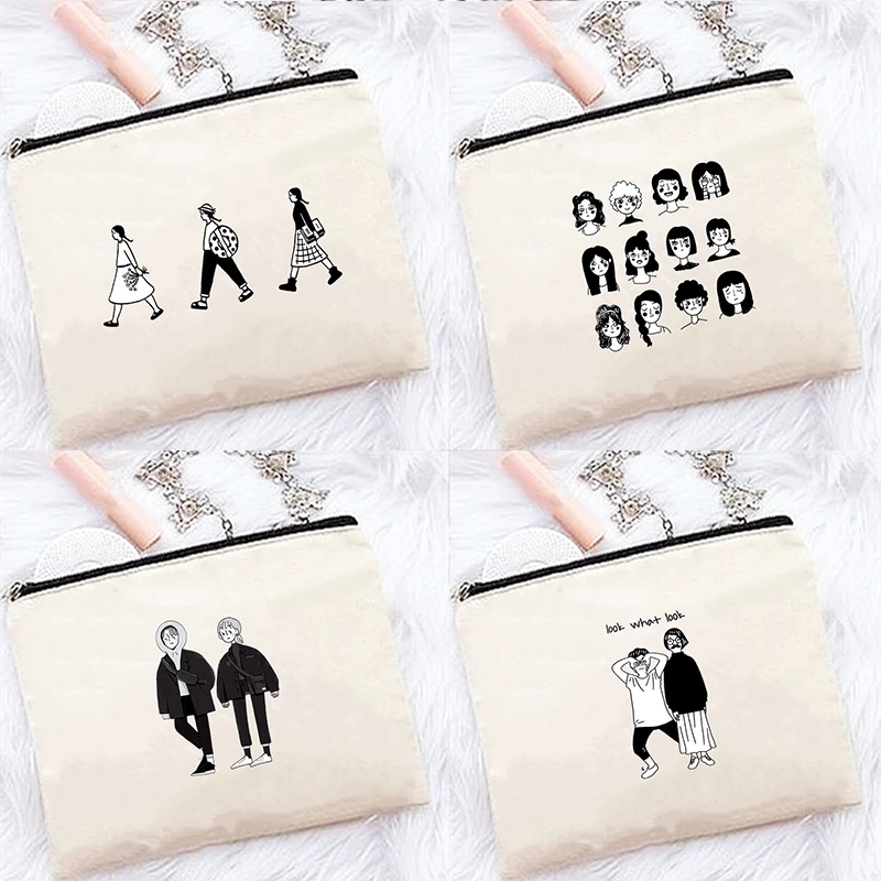 Многофункциональная холщовая косметичка для мужчин и женщин, органайзер для косметики с принтом для девушек, дорожная Сумочка для Хранения Туалетных Принадлежностей