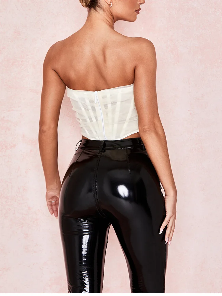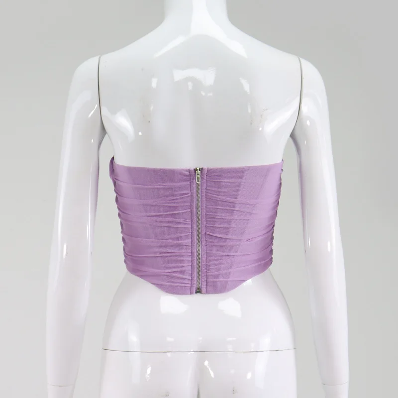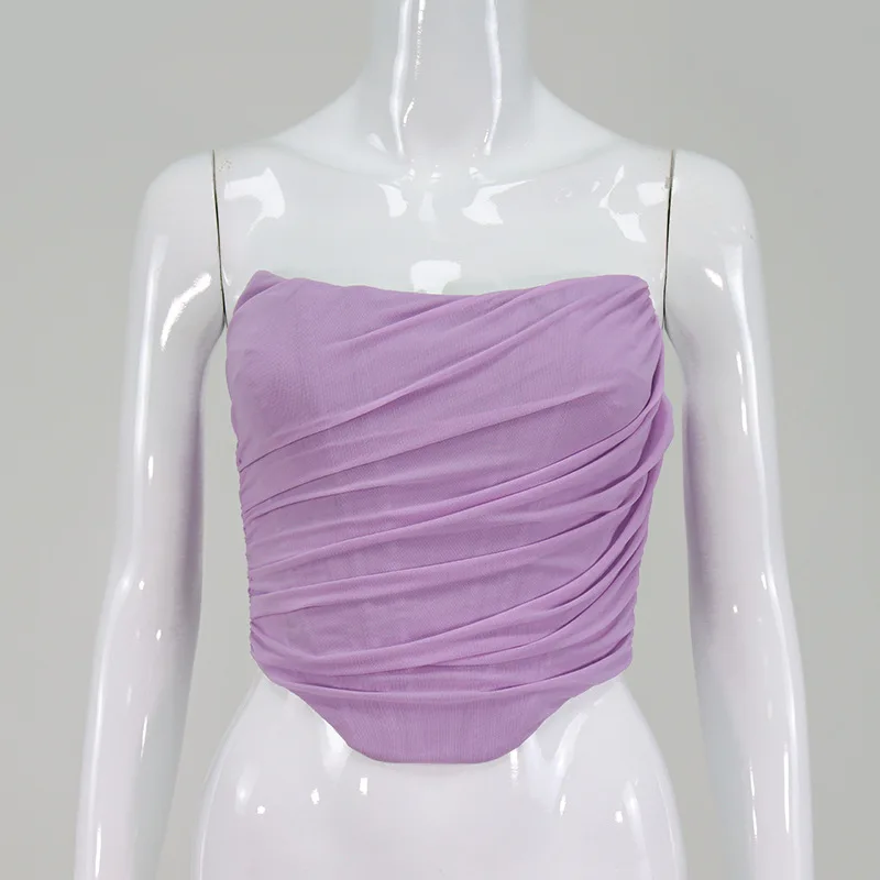 Женский пикантный жилет, однотонный бандо без бретелек, Новинка весна-лето 2020, модный сетчатый бюстгальтер и жилет в виде рыбьей косточки, женский короткий топ