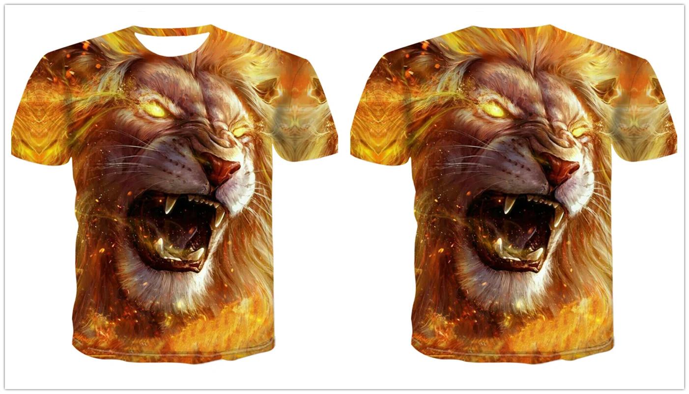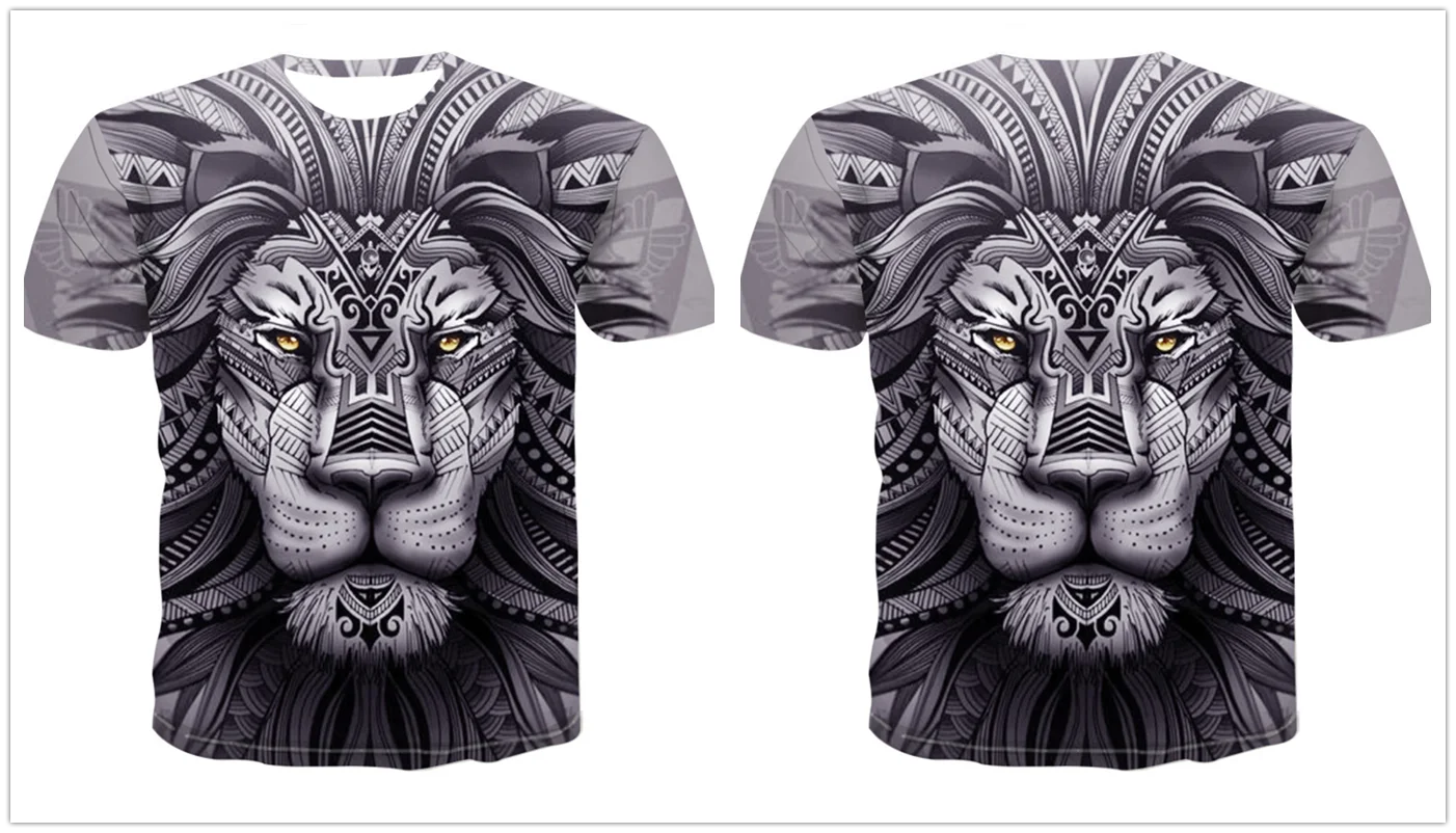 Новинка 2022, футболка с 3D-принтом льва и круглым вырезом, Повседн...