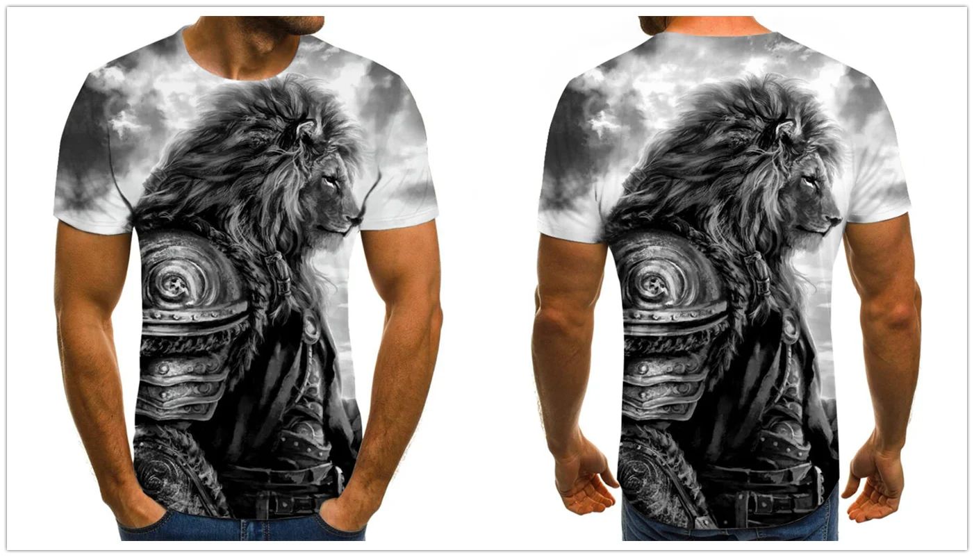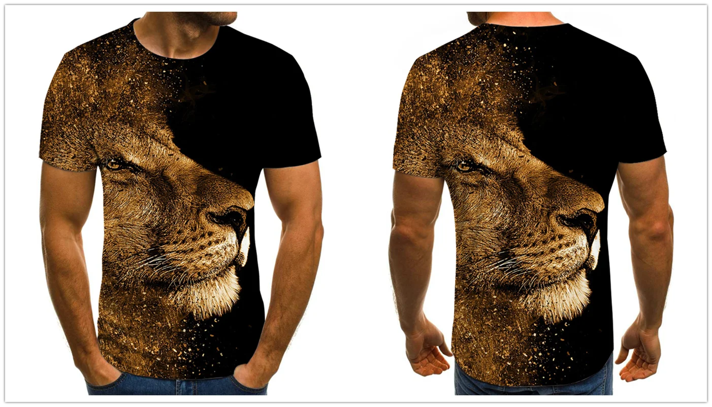 Летние мужские футболки с 3D принтом льва, Мужская футболка, дышаща...