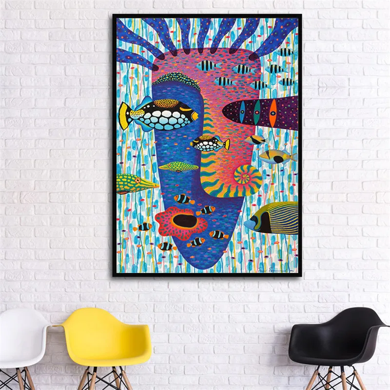 Скандинавский декор, настенная абстрактная картина маслом, забавная морская рыба, плакат, печатные картины на холсте для украшения гостиной