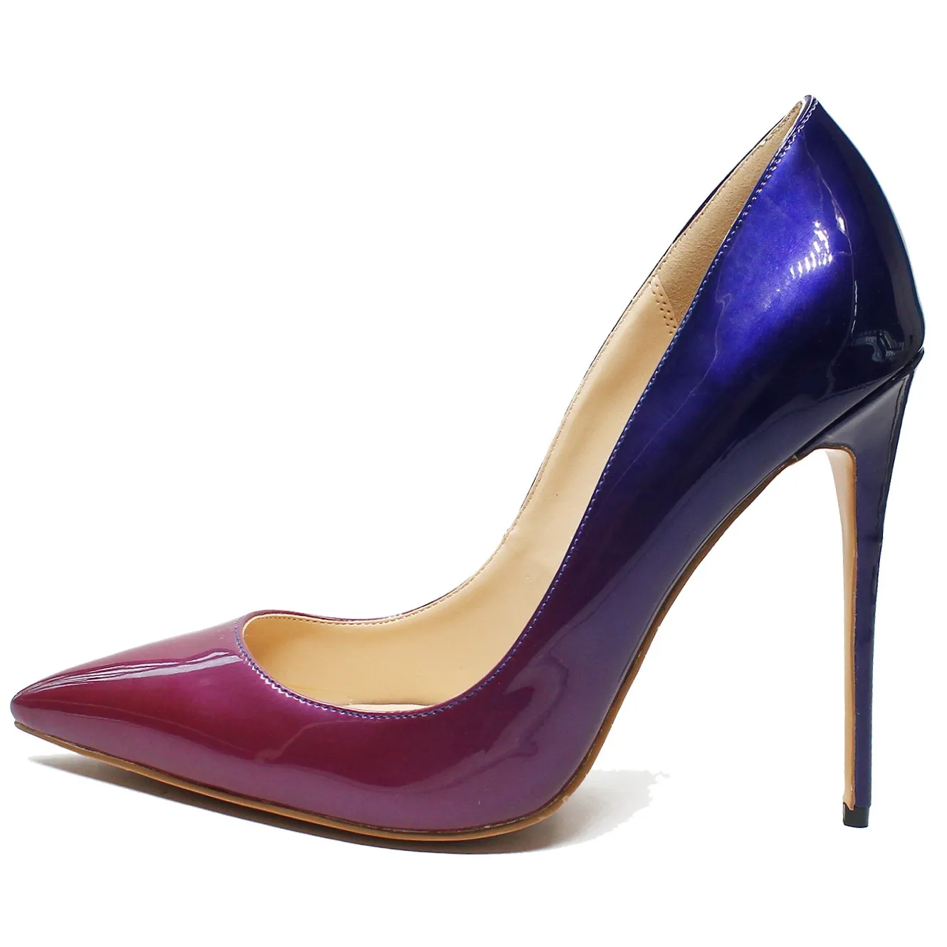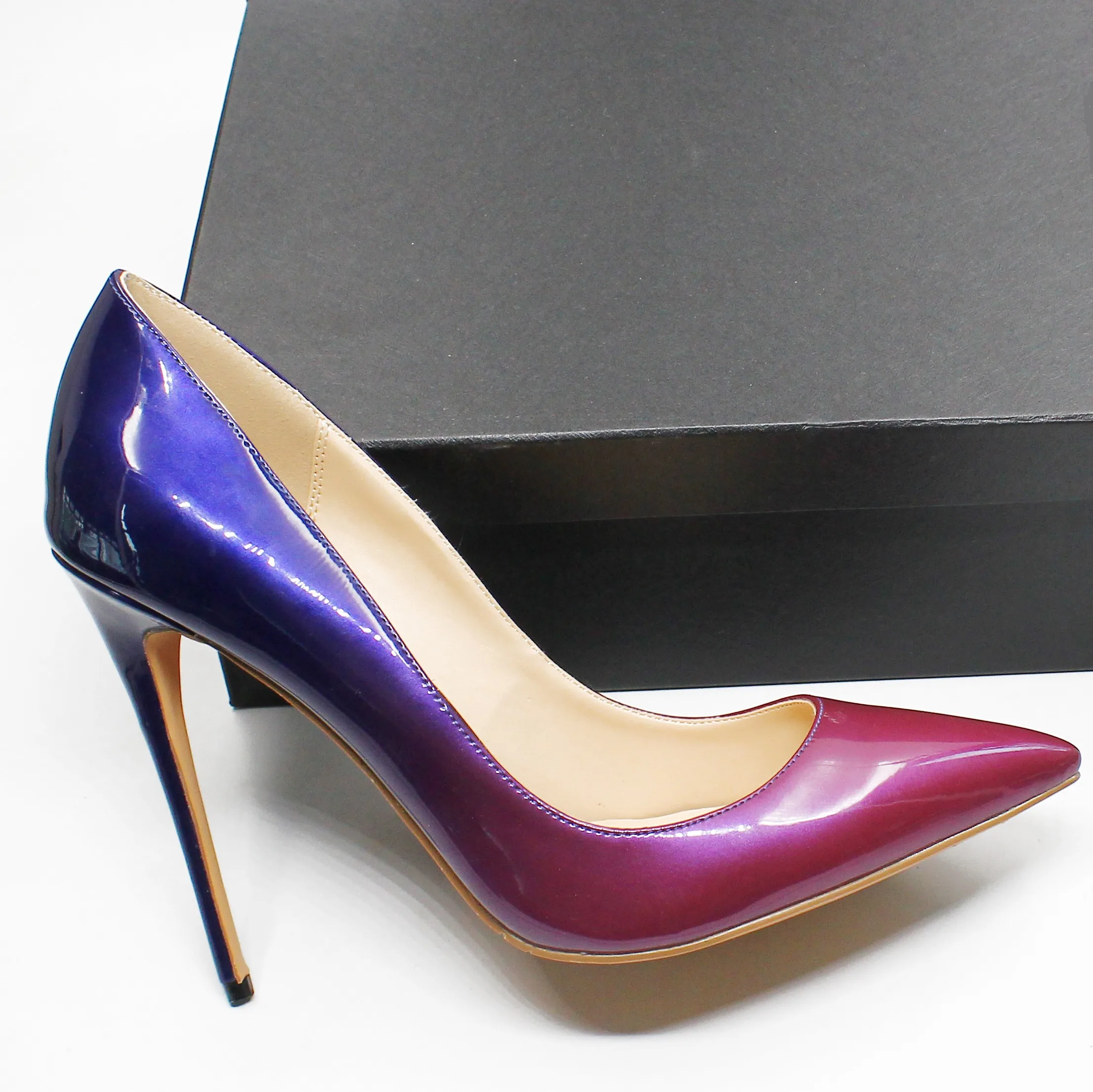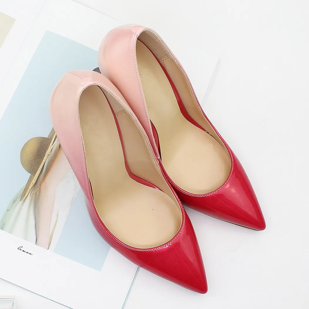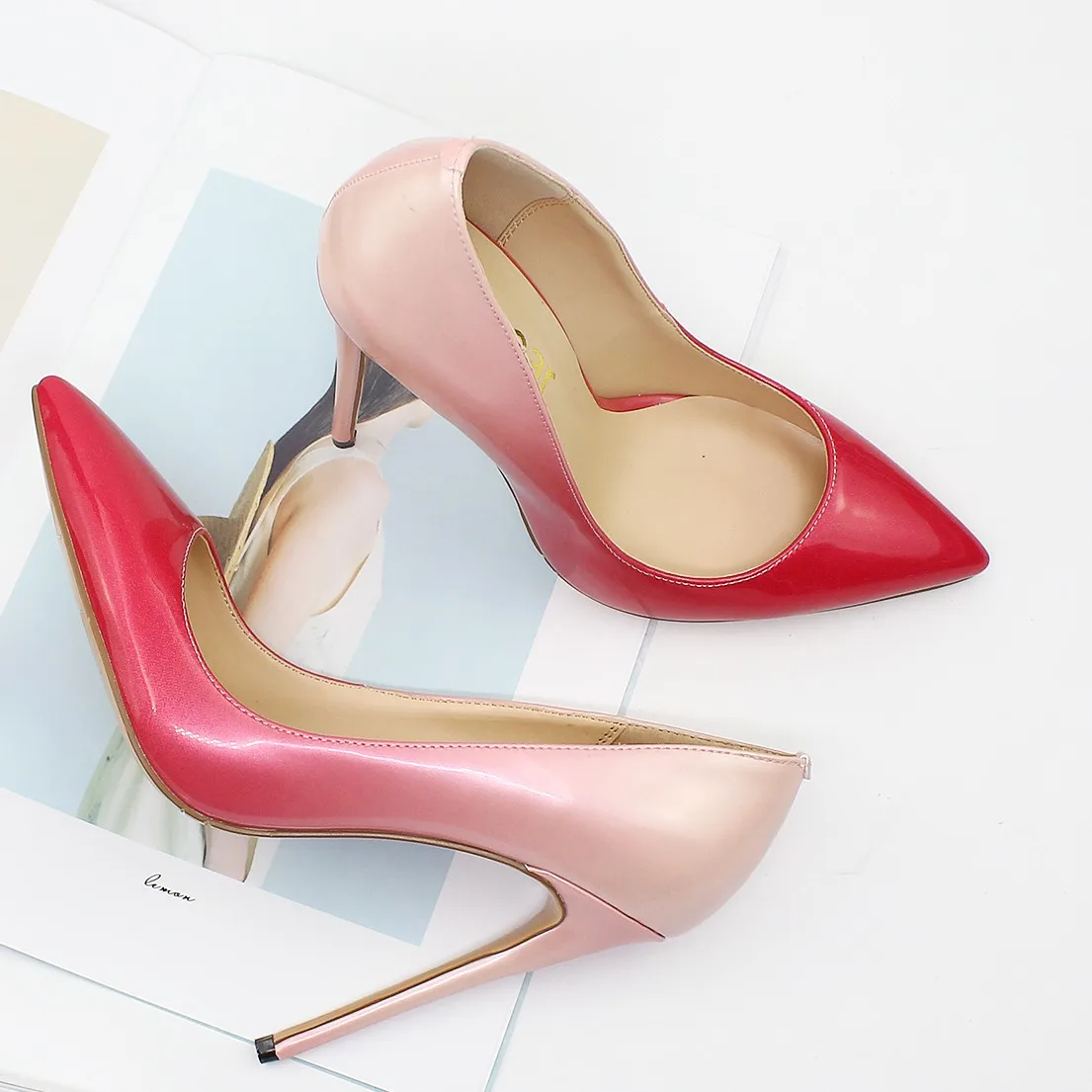 Fashion Wedding Party Pumps Big Size Women Patent Leather Pointed Toe High Heel Ladies Red Pink Gray Gradient Color ShoesWomen's shoes