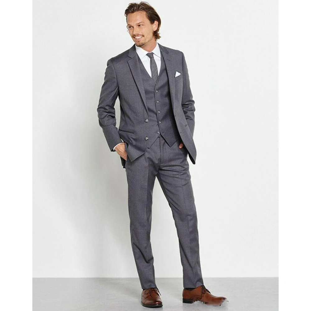 Классический Серый блейзер для мужчин, свадебный костюм из 3 предме...