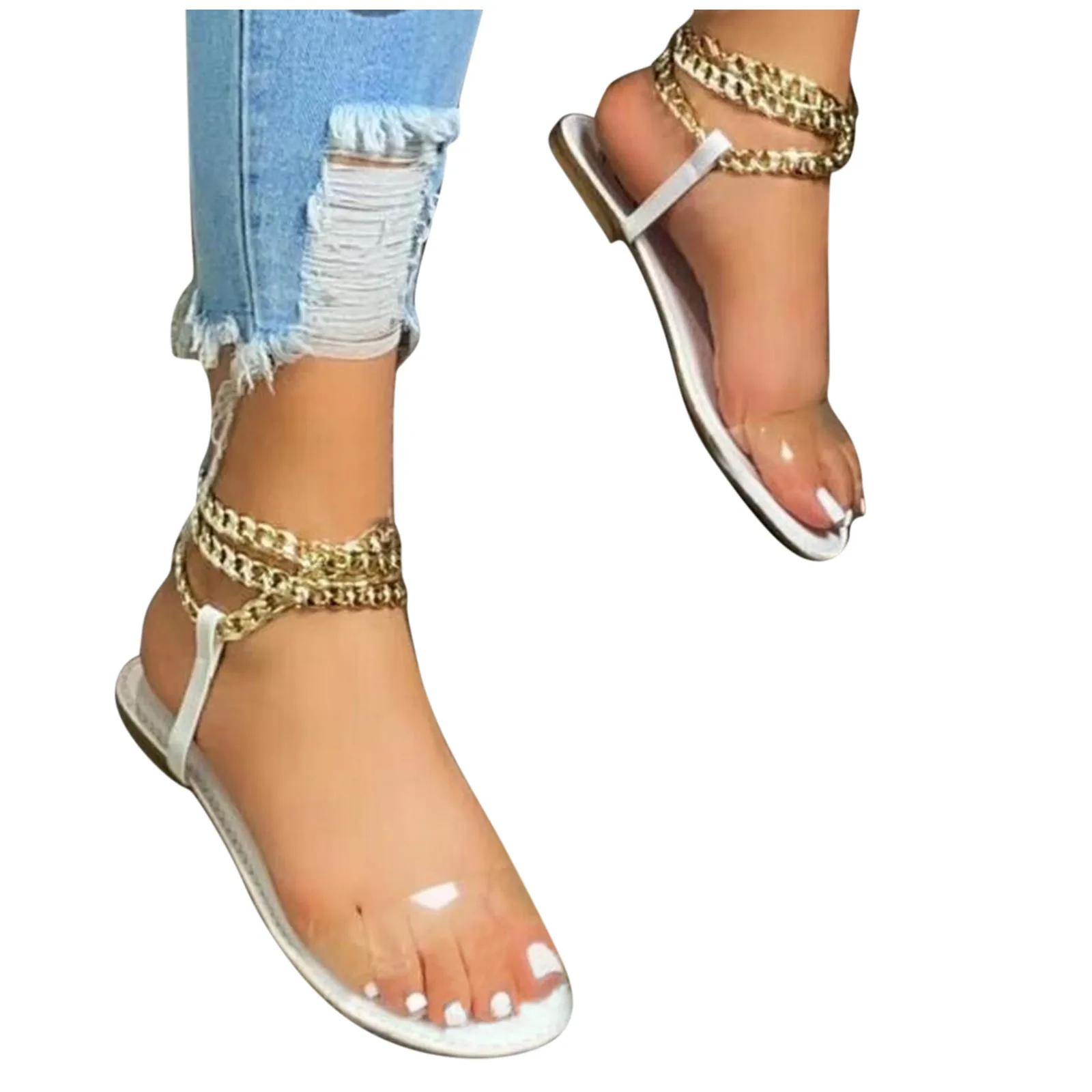 Сандалии TELOTUNY женские с цепочкой, повседневные босоножки на плоской подошве, с ремешком с пряжкой, однотонная уличная пляжная обувь с открытым носком, лето