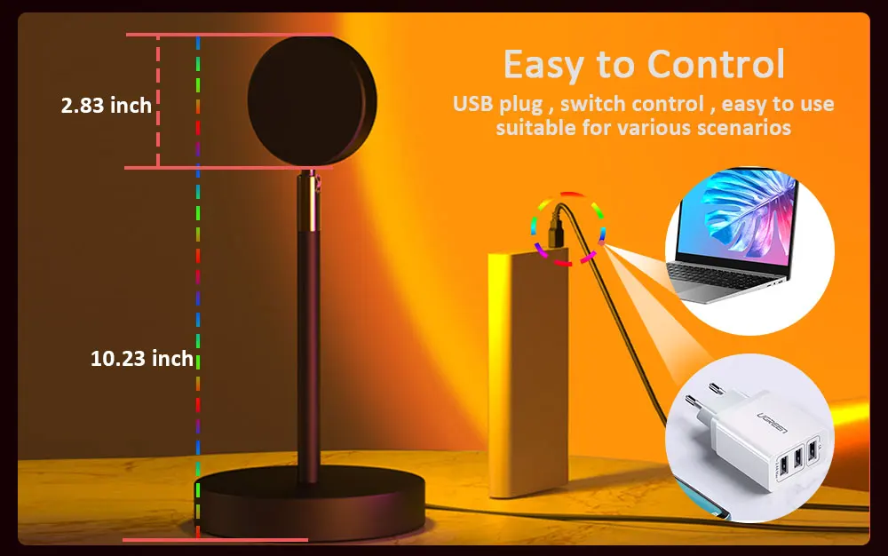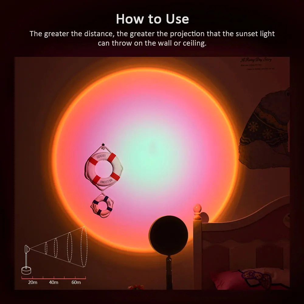 Изменение цвета RGB, управление через приложение для телефона, проекция заката, вращение на 180 градусов, романтический Радужный Свет заката